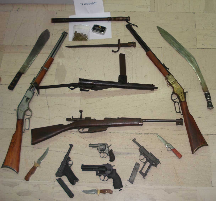 Σύμφωνα με ανακοίνωση της Αστυνομικής Διεύθυνσης Κορινθίας: Συνελήφθη, χθες (12-2-2013) το μεσημέρι, στην Κόρινθο Κορινθίας, από αστυνομικούς του Τμήματος Ασφαλείας Κορίνθου, ένας (1) 70χρονος ημεδαπός, για παράνομη κατοχή όπλων και ναρκωτικών.