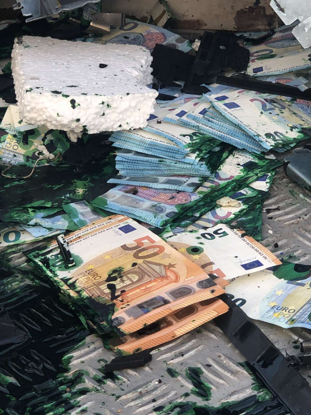 Σύμφωνα με τα έως τώρα στοιχεία της αστυνομικής έρευνας οι δράστες φέρονται να έχουν αποσπάσει ποσό της τάξεως των 69.000 ευρώ, τα οποία όπως σημειώσαμε έχουν "χρωματιστεί" στο σύνολό τους. Οι δράστες δεν αφαίρεσαν από αυτό το ATM ολόκληρη κασετίνα, αλλά ότι πρόλαβαν να μαζέψουν αμέσως μετά την έκρηξη και πριν την διαφυγή τους, όπως φαίνεται και στο βίντεο, που τους έχει καταγράψει.