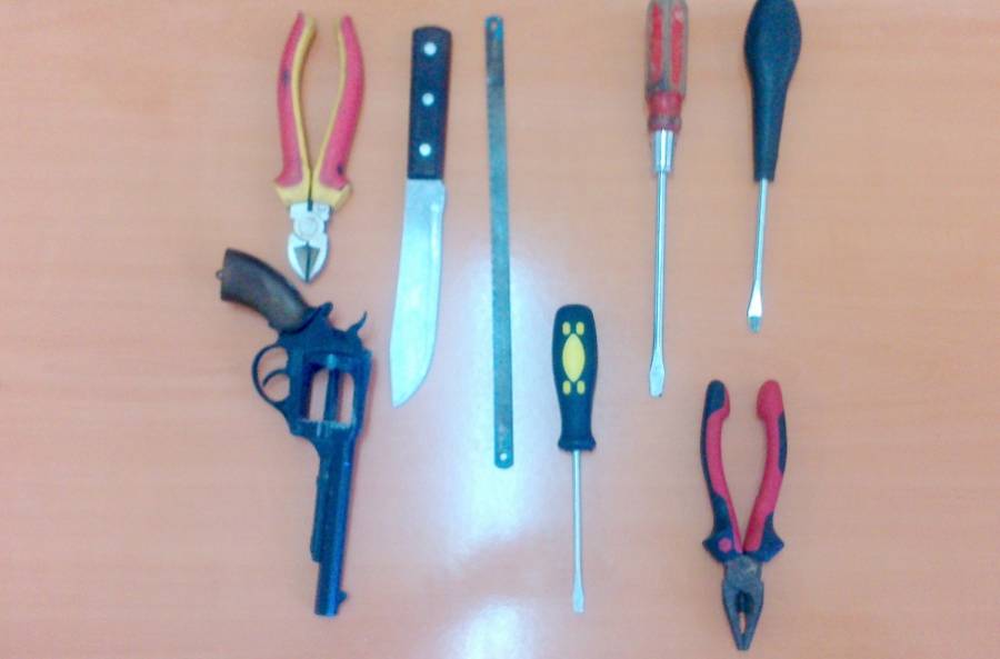 Σε έρευνα που πραγματοποιήθηκε στο όχημα βρέθηκαν και κατασχέθηκαν, ένα περίστροφο (REPLICA), ένα μαχαίρι και διάφορα διαρρηκτικά εργαλεία, ενώ κατασχέθηκε και το όχημα ως μέσο τέλεσης αξιόποινων πράξεων.