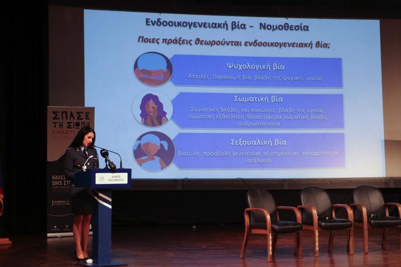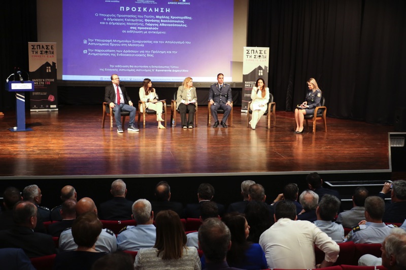 Στο δεύτερο μέρος της εκδήλωσης παρουσιάστηκαν οι δράσεις για την πρόληψη και αντιμετώπιση της ενδοοικογενειακής βίας, με το αντίστοιχο γραφείο στη Μεσσηνία να ξεκινά τη λειτουργία του τον περσινό Ιούνιο, στελεχωμένο από 8 αστυνομικούς.