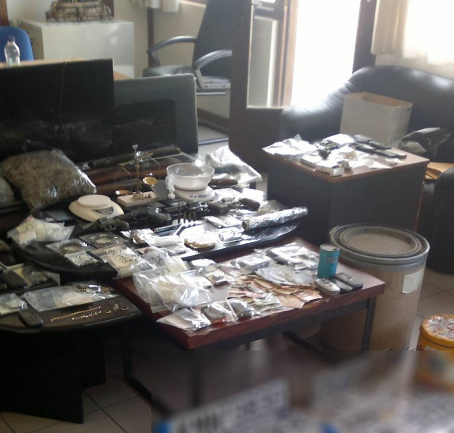 Στο πλαίσιο των αστυνομικών επιχειρήσεων πραγματοποιήθηκαν περισσότερες από 30 έρευνες σε σπίτια και καταστήματα στις οποίες βρέθηκαν και κατασχέθηκαν: 1.210 γραμμάρια ακατέργαστου χασίς, 4,6 γραμμάρια κοκαΐνης, 3 περίστροφα, 3 κυνηγετικά όπλα, αεροβόλο όπλο, στιλέτο, 17 φυσίγγια, 281 εκατοστά φιτίλι, 15.860 γραμμάρια πυρίτιδας, 2 πυροκροτητές, 2 φωτοβολίδες. Επίσης κατασχέθηκε χρηματικό ποσό 1.795 ευρώ, 6 ζυγαριές ακριβείας, 31 κινητά τηλέφωνα, 5 αυτοκίνητα μεταξύ των οποίων ένα τζιπ BMW 2.000 κυβικών και μία μοτοσυκλέτα. Ακόμα βρέθηκαν 2 φορητοί ηλεκτρονικοί υπολογιστές και μία τηλεόραση.