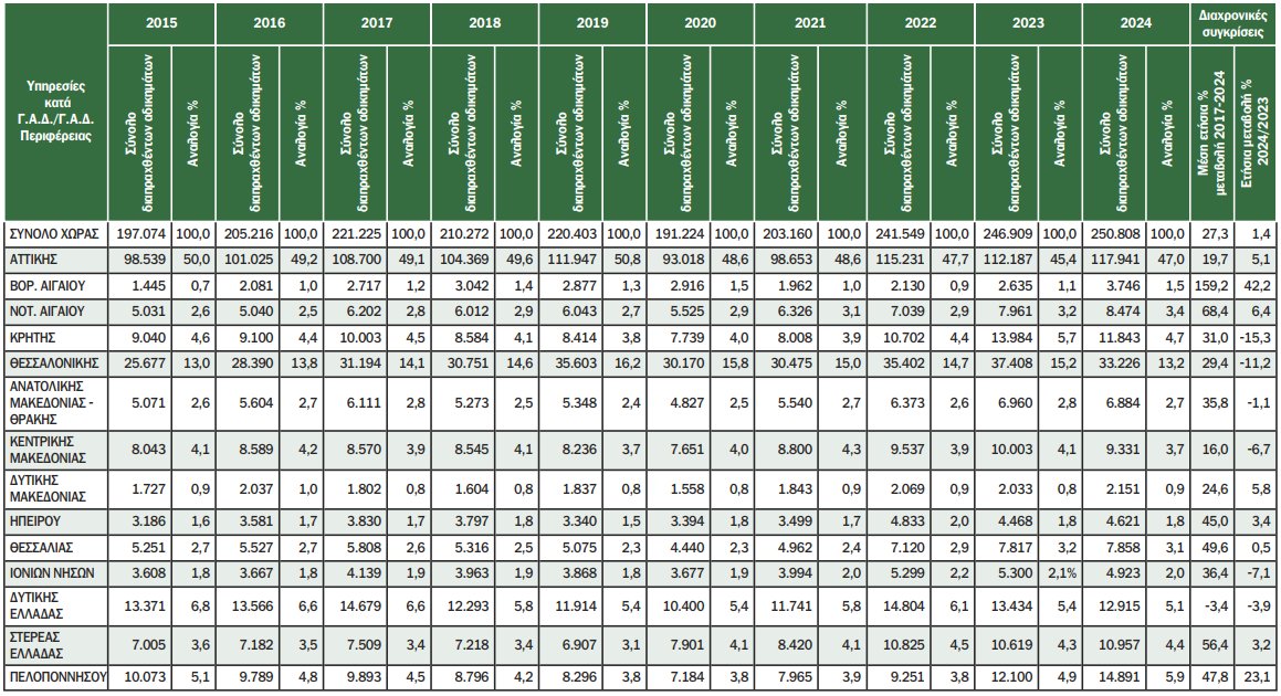 Σύμφωνα με τα επίσημα στοιχεία της Ελληνικής Στατιστικής Αρχής , τα διαπραχθέντα αδικήματα αυξήθηκαν από 10.073 το 2015 σε 14.891 το 2024, δηλαδή κατά 48% συνολικά και πάνω από 23% μέσα σε έναν μόλις χρόνο. Το ποσοστό συμμετοχής της Περιφέρειας στο σύνολο της χώρας ανέβηκε από 4,7% το 2016 σε σχεδόν 6% το 2024.