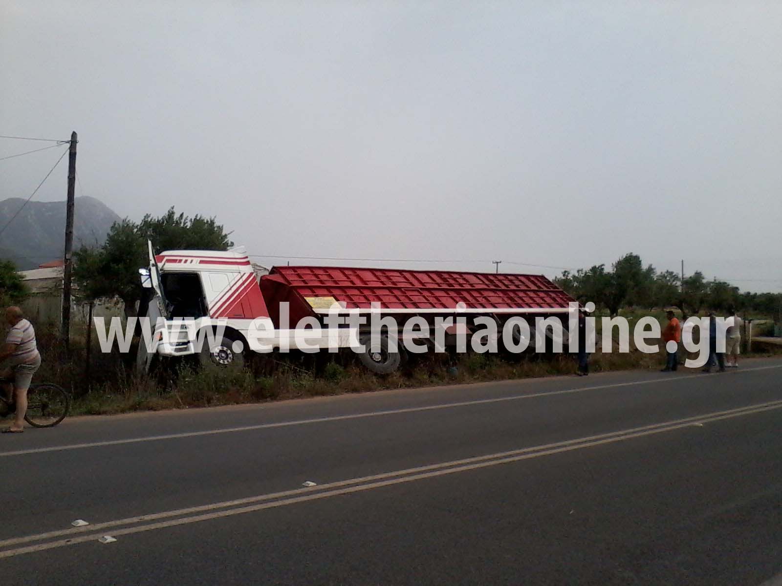 Το ατύχημα συνέβη περίπου στις 4 μ.μ. Το βαρύ όχημα ήταν φορτωμένο με παλιά σίδερα και κινείτο προς την Κυπαρισσία. Για άγνωστη αιτία εξετράπη της πορείας του προς τα αριστερά και έπεσε με το πλάι μέσα στο χαντάκι, αφού πρώτα πέρασε πάνω από ένα μικρό τσιμεντένιο γεφύρι - χωρίς ευτυχώς ο οδηγός να πάθει το παραμικρό.
