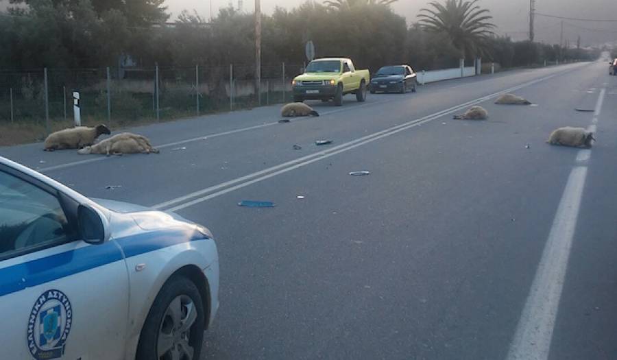 Τροχαίο με θύματα... 7-8 πρόβατα σημειώθηκε πριν λίγη ώρα στην ευθεία Αστρους – Παραλίου Αστρους.