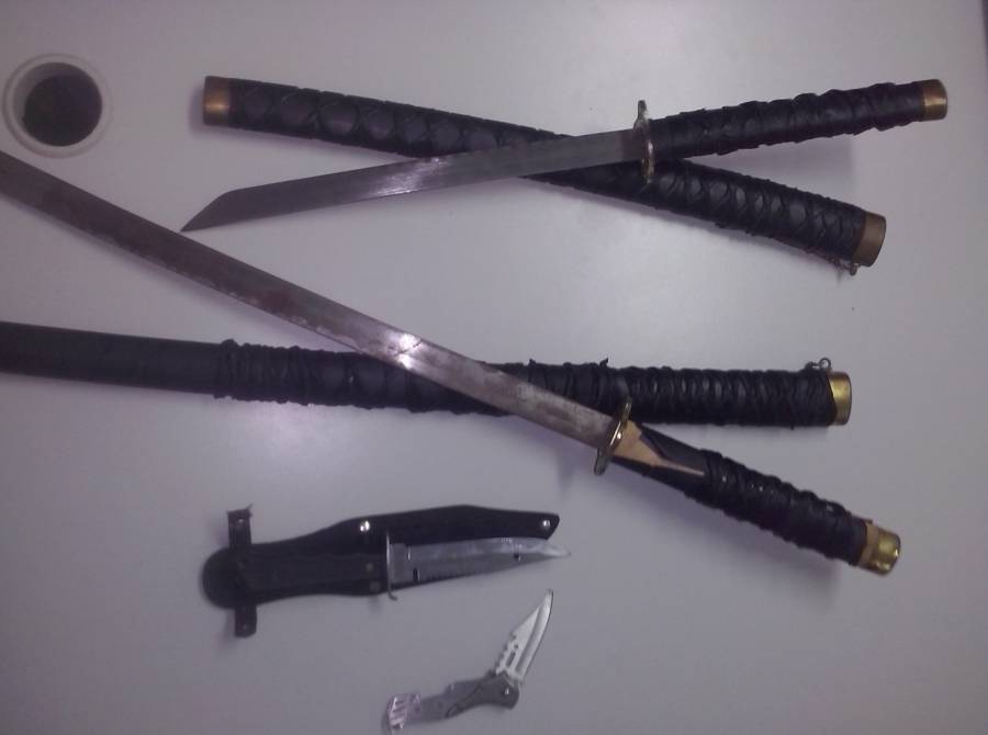 • Δύο (2) ξίφη με μήκος λάμας -54- και -32- εκατοστών, αντίστοιχα.