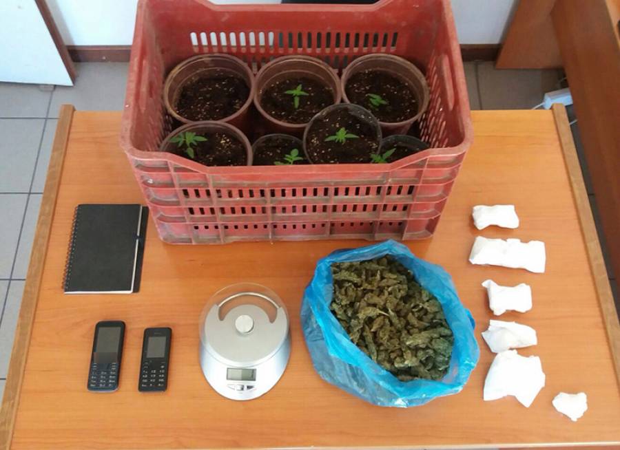 Στον κήπο, ο κατηγορούμενος καλλιεργούσε σε γλάστρες 7 δενδρύλλια χασίς, ύψους από 1 έως 10 εκατοστά. Τις γλάστρες τις είχε κρυμμένες πίσω από κάτι ξύλα και σύνεργα για το λιομάζωμα, γι' αυτό και η αρραβωνιαστικιά του υποστήριξε ότι δεν τις είχε δει - ενώ για το χασίς στο ψυγείο ισχυρίστηκε πως τον ρώτησε και εκείνος της είπε να μην ασχολείται με αυτά. Οι αστυνομικοί κατάσχεσαν επίσης μια ζυγαριά ακριβείας, δύο κινητά τηλέφωνα, καθώς και ένα μαύρο μπλοκ με ιδιόχειρες σημειώσεις όπου υπήρχαν ονόματα, τηλέφωνα και χρηματικά ποσά.