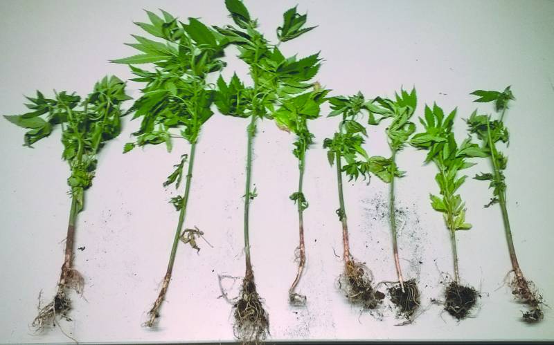 Για την ιστορία, ο κατηγορούμενος συνελήφθη στις 14 Ιουλίου του 2014, μετά από τηλεφώνημα που έκανε κάποιος στο Αστυνομικό Τμήμα Πύλου. Αλλωστε τα φυτά, ύψους 40 εκατοστών, δεν ήταν κάπου κρυμμένα, αλλά μπορούσε να τα δει ο καθένας μέσα στον κήπο. Οσο για τα 110 γραμμάρια χασίς που είχε στο σπίτι, αυτά -όπως κατέθεσε στη δίκη αστυνομικός- ήταν ανάμεικτα με κλαριά, κλώνους και φύλλα.