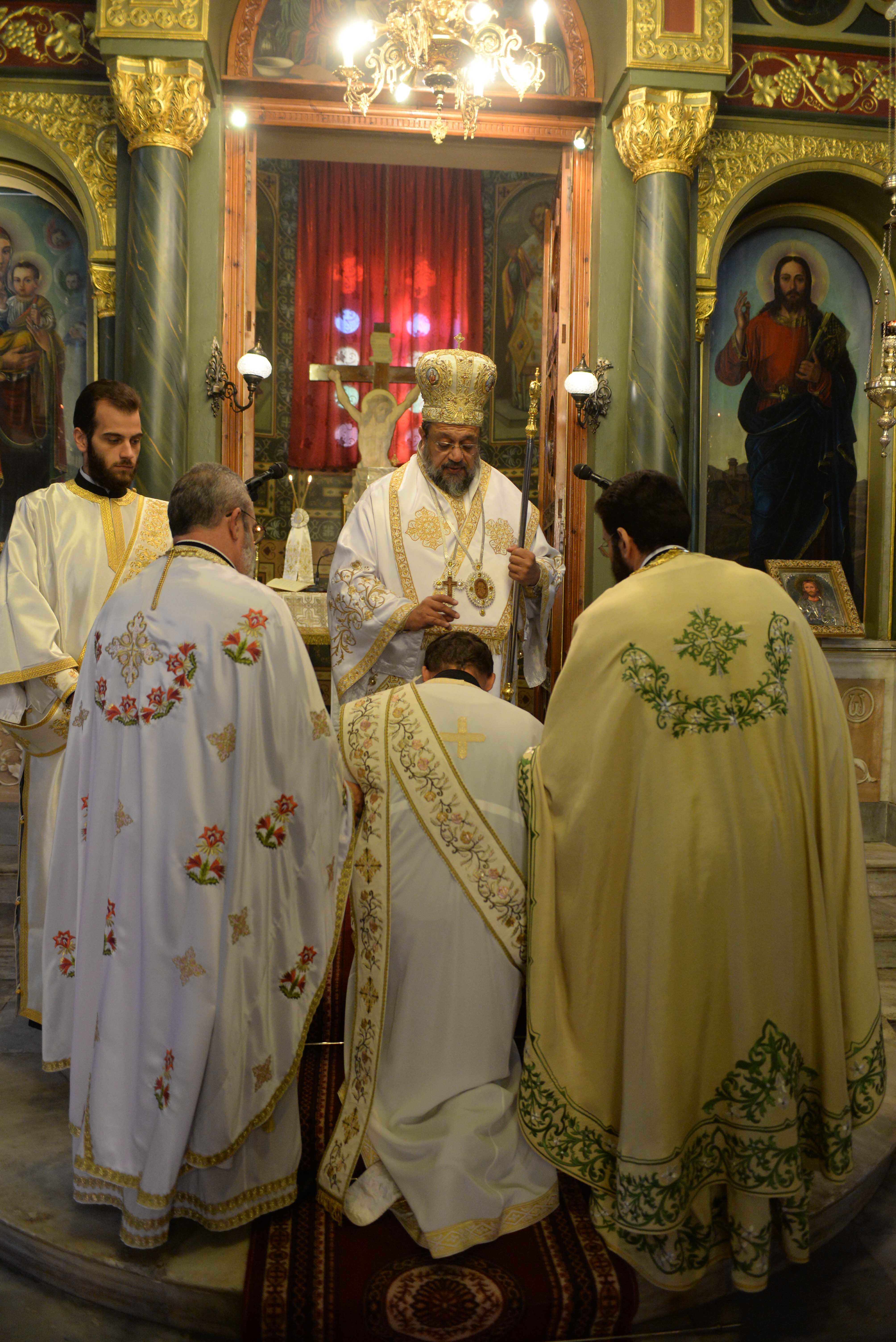 Κατά τη διάρκεια της ακολουθίας προέβη στην εις πρεσβύτερον χειροτονία του διακόνου του ναού π. Βασιλείου Μπεγέτη. Ο κ. Χρυσόστομος απευθυνόμενος στο νέο πρεσβύτερο, του ευχήθηκε υγεία, δύναμη και κάθε καλό στην πορεία της ιερατικής του διακονίας.