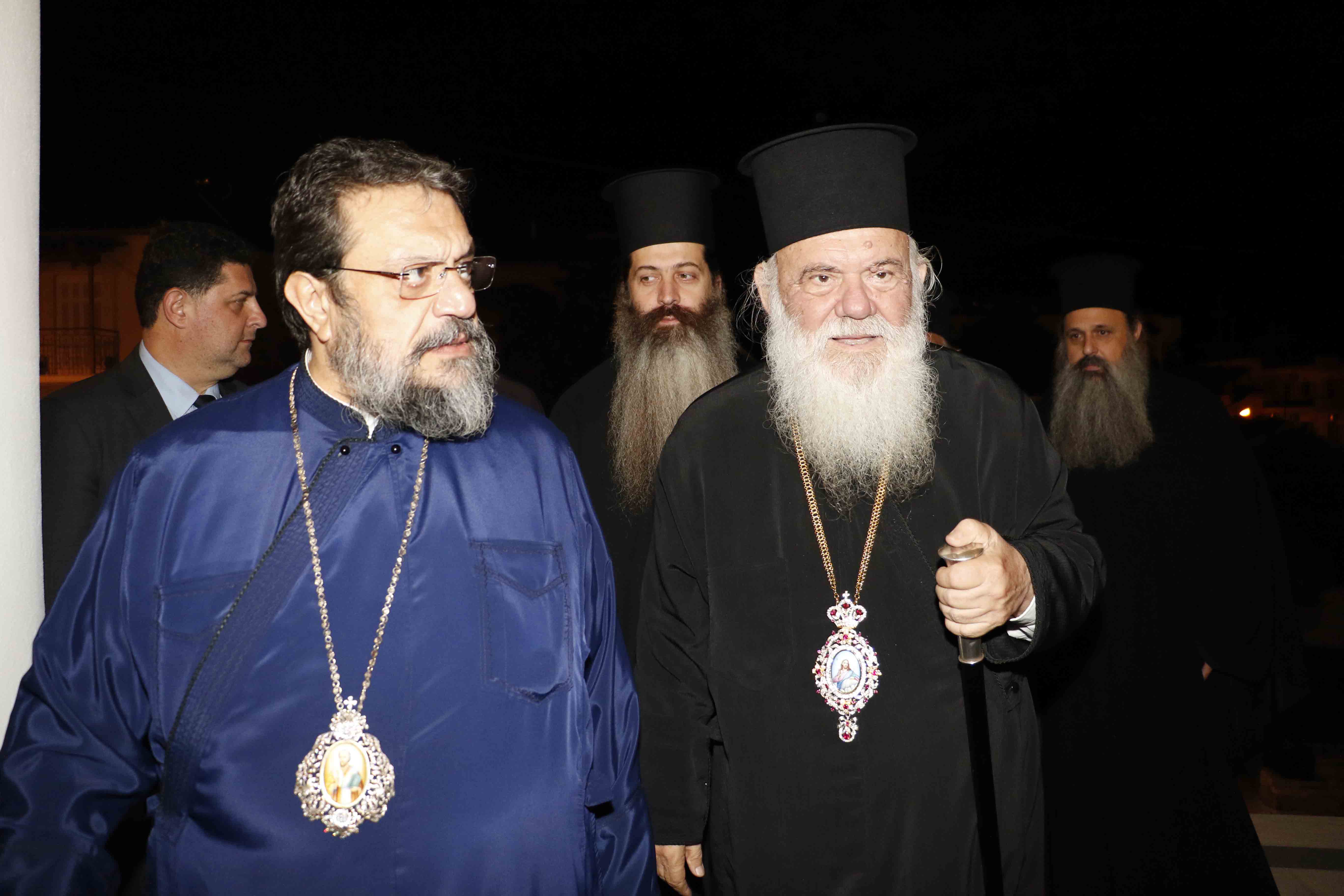 «Πάρα πολλά πράγματα με φέρνουν στην Καλαμάτα. Πάνω απ’ όλα ιδιαίτερα σήμερα η Εκκλησία μας έχει μια μεγάλη γιορτή, γιορτάζει τον Αγιο Ιωάννη το Χρυσόστομο. Ο σεβασμιώτατος μητροπολίτης σας και αγαπητός αδελφός κ. Χρυσόστομος άγια τα ονομαστήριά του. Αισθανόμαστε την ανάγκη να είμαστε κοντά του, να του ευχηθούμε να έχει δύναμη πολλή, υγεία πολλή και υπομονή πολλή, ώστε να συνεχίζει το ωραίο έργο που κάνει και εδώ ή στο Πανεπιστήμιο ή όπου του αναθέτει η Εκκλησία, καλά και όσο μπορεί καλύτερα.