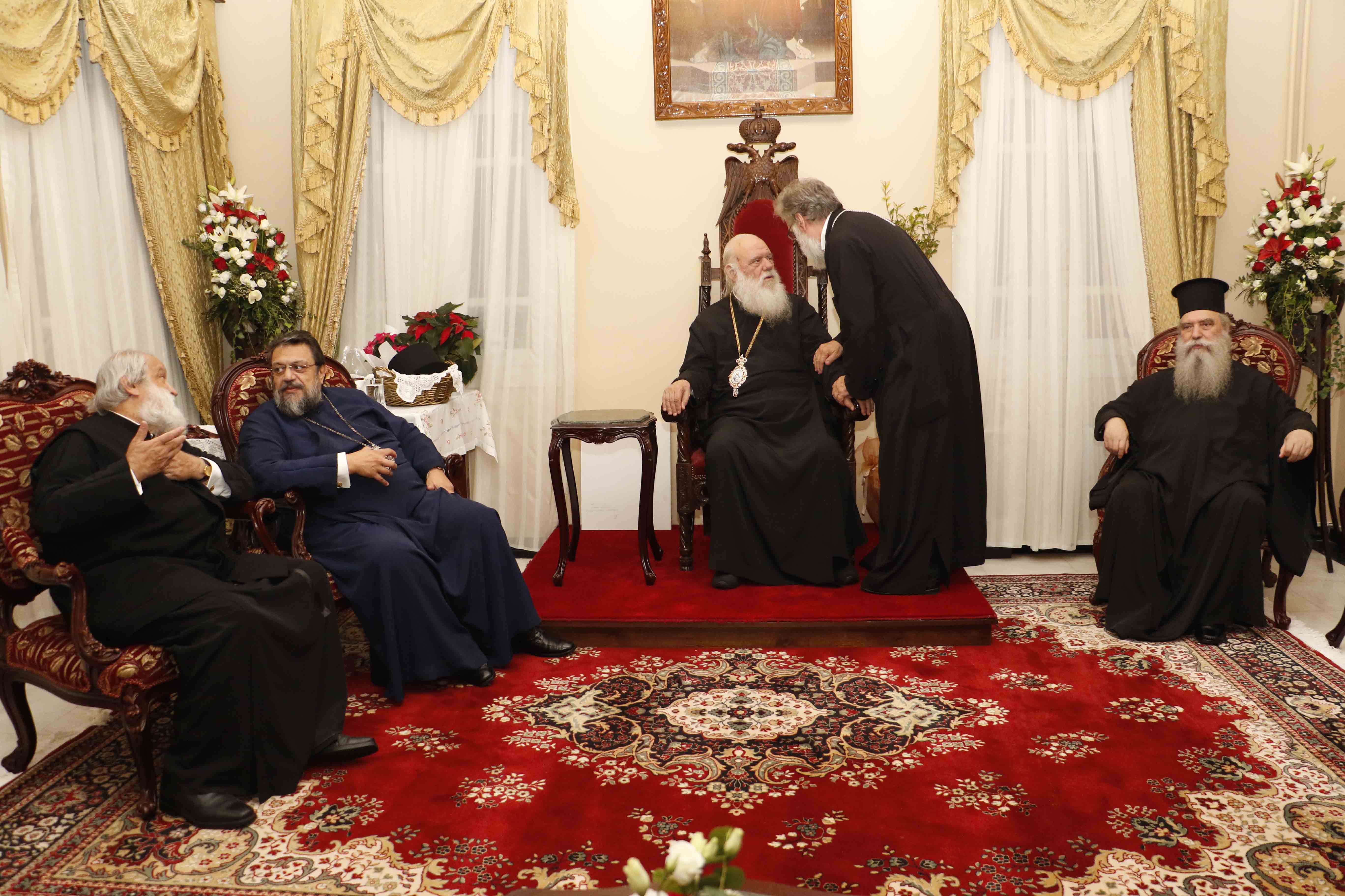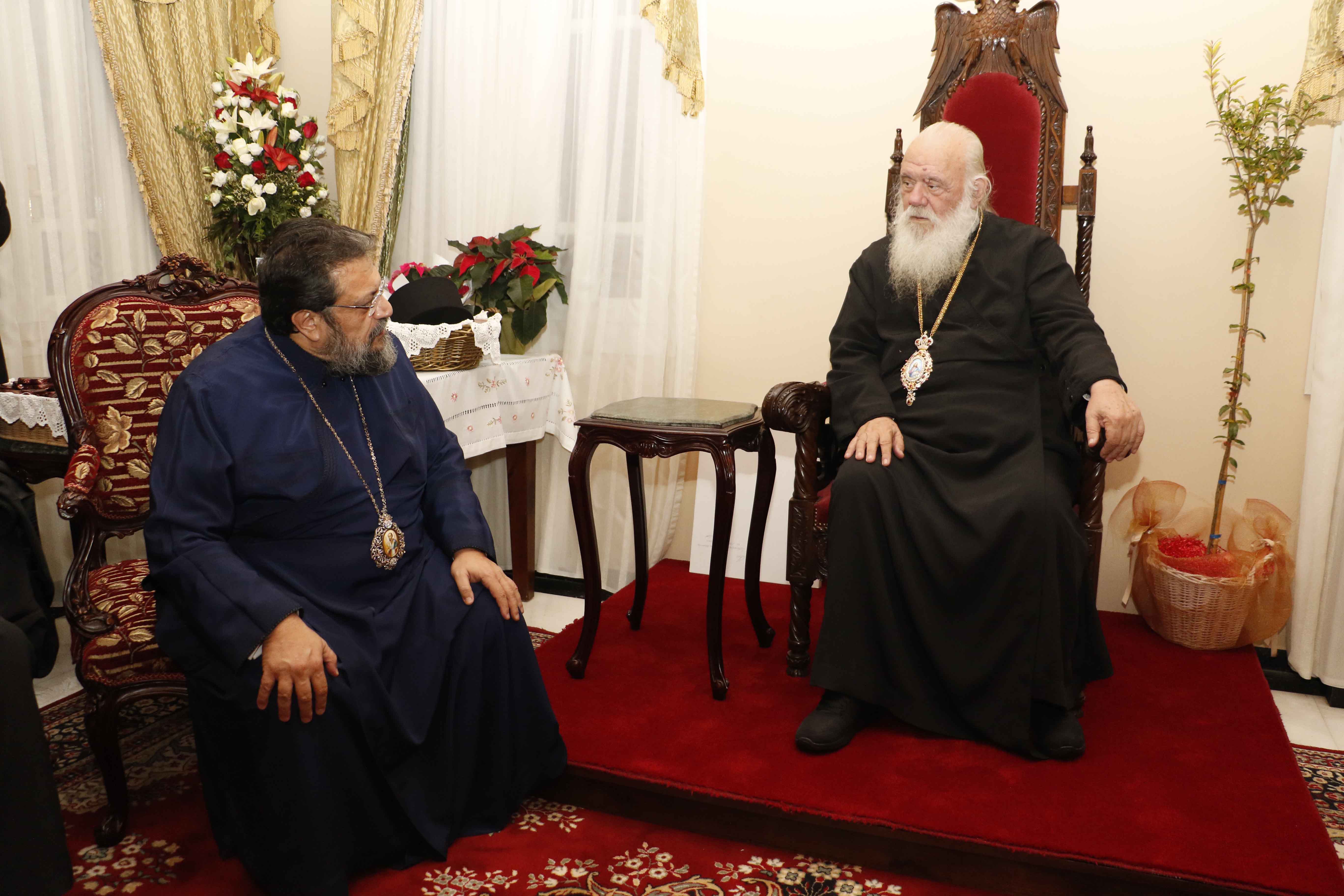 Την ώρα της επίσκεψης του Αρχιεπισκόπου στον κ. Χρυσόστομο, παρόντες ήταν οι μητροπολίτες Σπάρτης και Μονεμβασίας Ευστάθιος (είχε εγκάρδια συνομιλία με τον κ. Ιερώνυμο), Ιλίου Αθηναγόρας, Λαρίσηγς Ιγνάντιος και Μεγάρων Κωνσταντίνος.