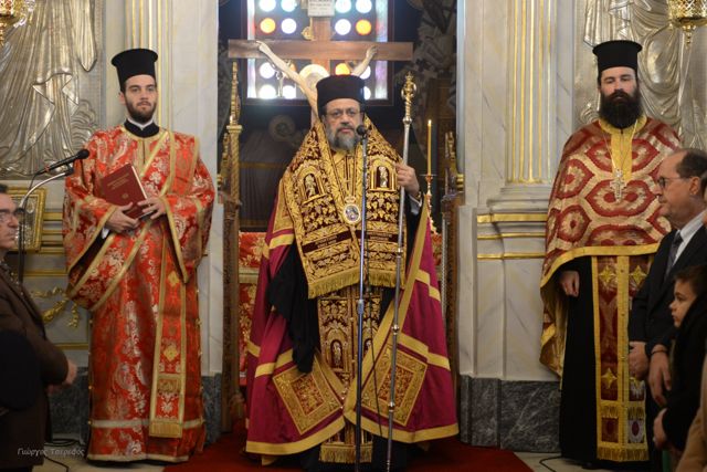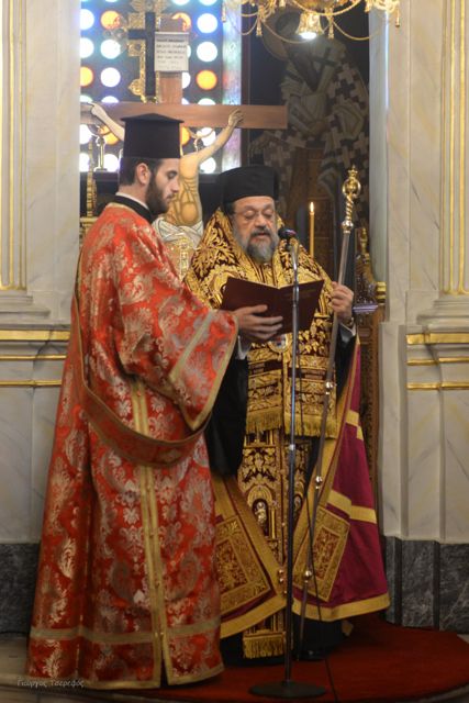 Στη συνέχεια ευλόγησε την Βασιλόπιτα του Μητροπολιτικού Ναού και ευχήθηκε για το νέο έτος στους ιερείς και σε όσους διακονούν σε αυτόν.