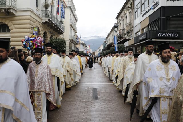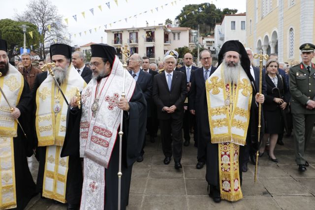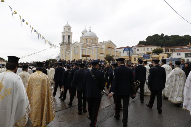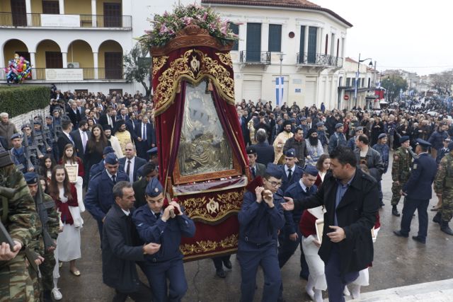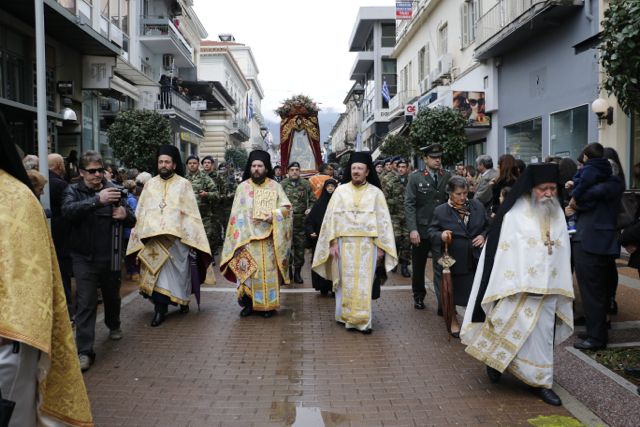 Το πρωί στο μητροπολιτικό ναό της Υπαπαντής τελέστηκε πολυαρχιερατική θεία λειτουργία και δοξολογία. Στις 11 ξεκίνησε η λιτάνευση της εικόνας της Παναγίας στους κεντρικούς δρόμους της πόλης. Για μια ακόμα φορά ο Πρόεδρος της Δημοκρατίας παραβίασε το πρωτόκολλο και στη γειτονιά των παιδικών του χρόνων, στην οδό Καίσαρη, βγήκε στην άκρη και χαιρέτισε τους παλιούς γνωστούς του και τους ευχήθηκε χρόνια πολλά για τη γιορτή της πόλης.