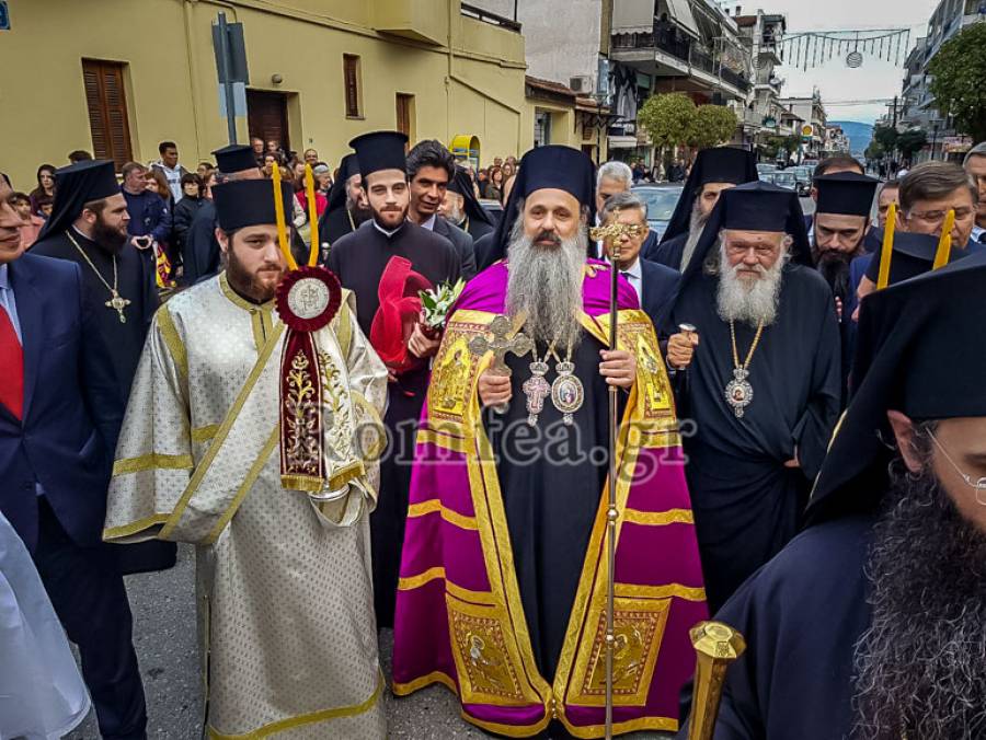 Στη συνέχεια ο νέος Μητροπολίτης συνοδευόμενος υπό του Αρχιεπισκόπου Αθηνών και πάσης Ελλάδος κ. Ιερωνύμου, έφτασε στην κεντρική πλατεία Ρήγα Φεραίου Καλαμπάκας.