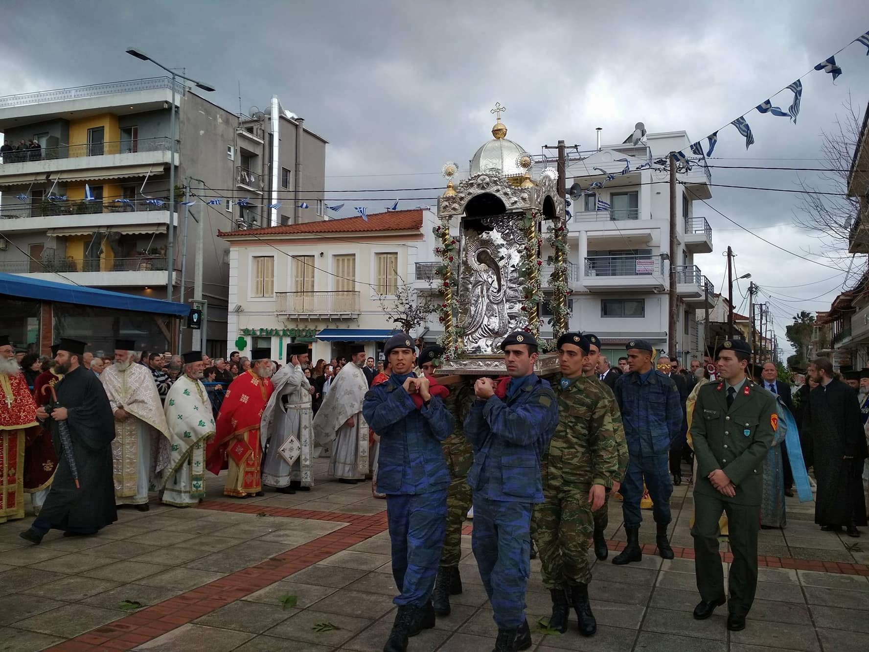 Μετά τη Θεία Λειτουργία ακολούθησε λιτάνευση της ιερής εικόνας στους δρόμους της πόλης.