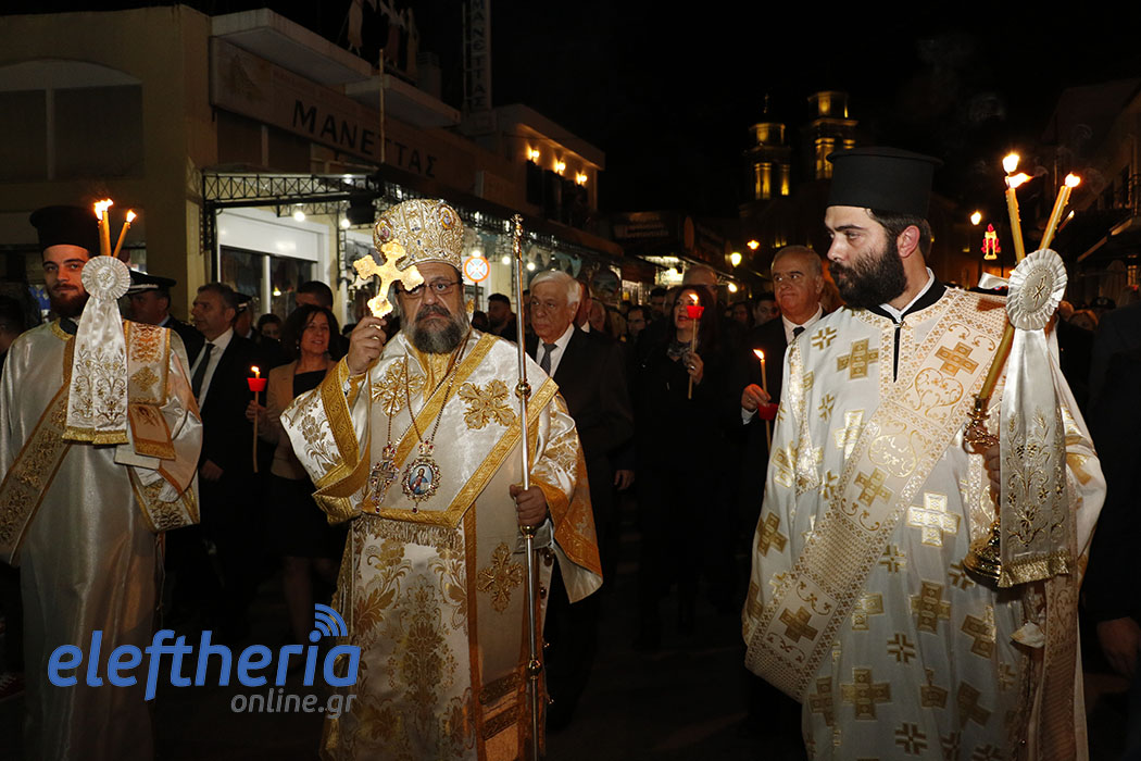 Ως είθισται ο Επιτάφιος της Υπαπαντής συναντήθηκε με αυτόν του Αγίου Νικολάου Φλαρίου στην κεντρική πλατεία στο ύψος του Πνευματικού Κέντρου υπό τους ήχους της Δημοτικής Φιλαρμονικής.