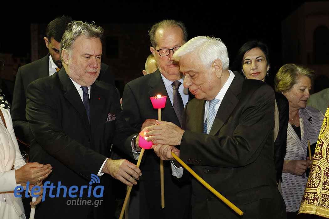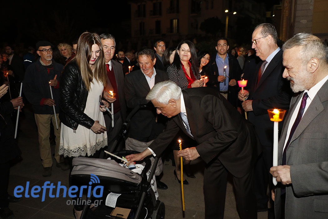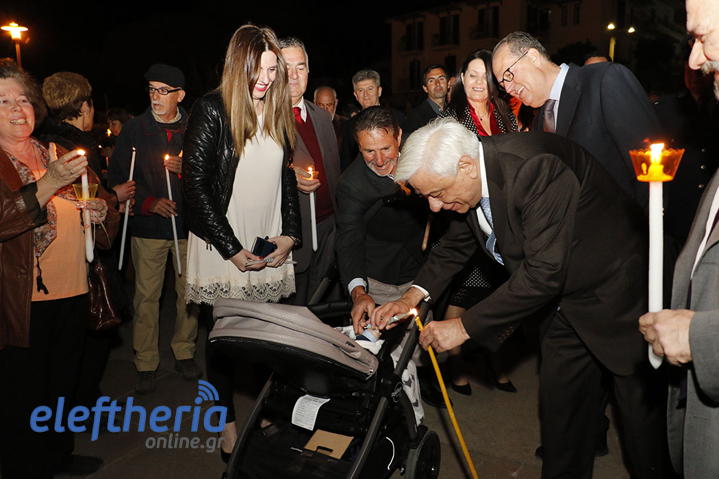 Κατά την αναχώρησή του ο κ. Παυλόπουλος άναψε με το κερί του την λαμπάδα ενός μωρού, που ήταν σε καρότσι. Ο παππούς του παιδιού του ζήτησε να μεριμνήσει και από την πλευρά του για τους δύο στρατιωτικούς, που κρατούνται στην Ανδριανούπολη.