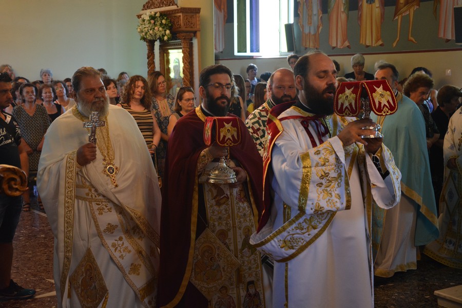 Το Σάββατο, την πανηγυρική θεία λειτουργία τέλεσε ο μητροπολίτης Αρτης κ. Καλλίνικος, συλλειτουργούντων των μητροπολιτών Μάνης κ. Χρυσοστόμου, Μεσσηνίας κ. Χρυσοστόμου και του επισκόπου Μοζαμβίκης κ. Χρυσοστόμου.
