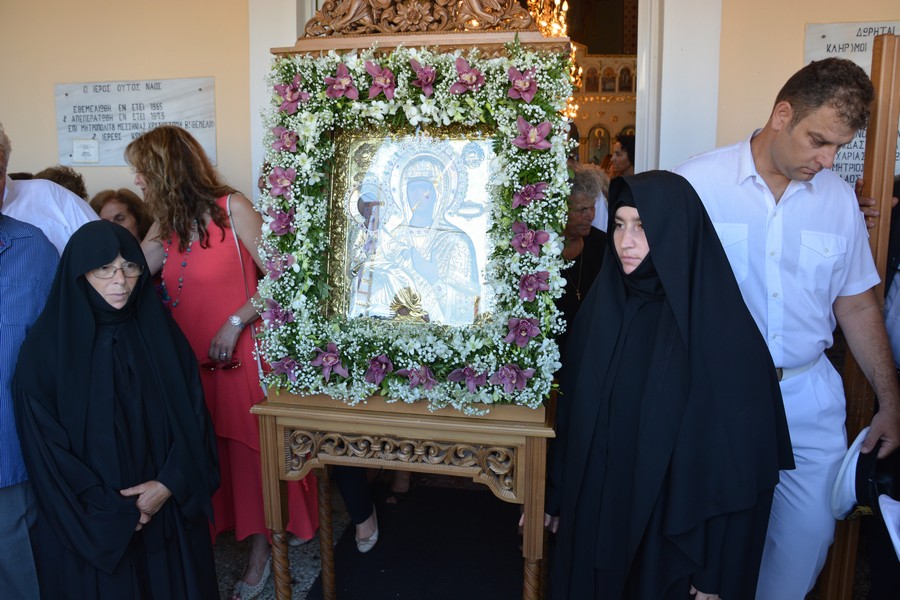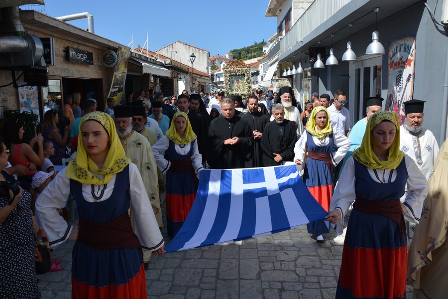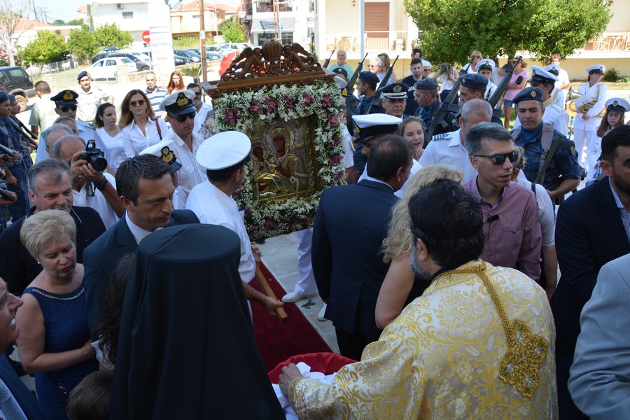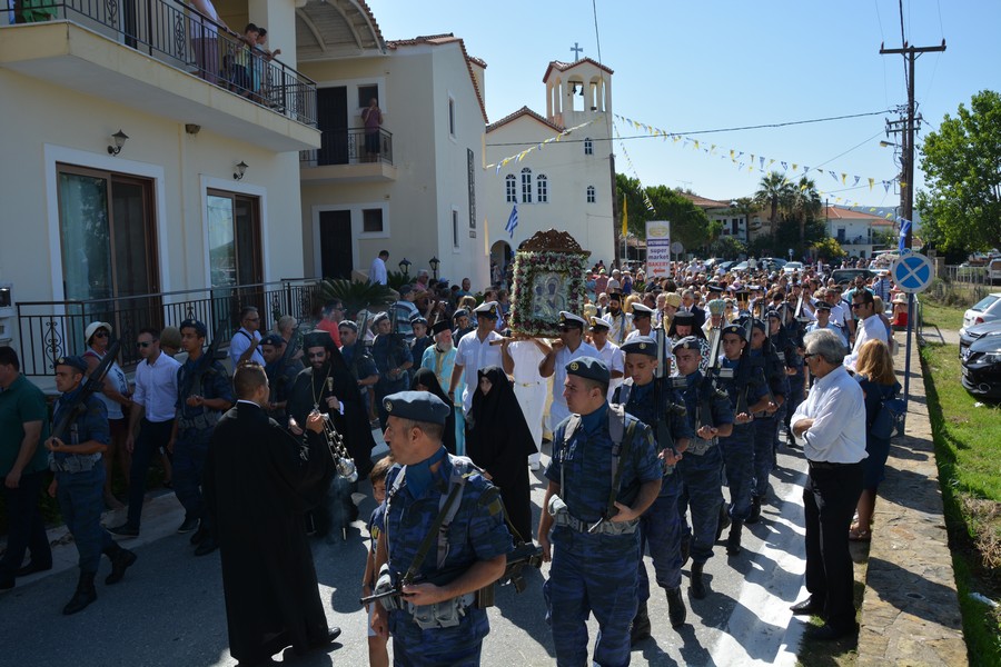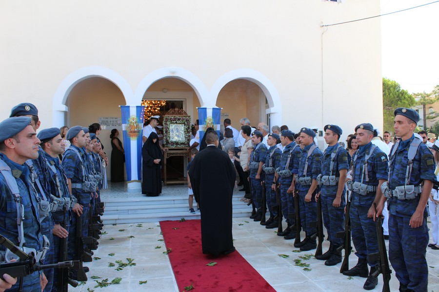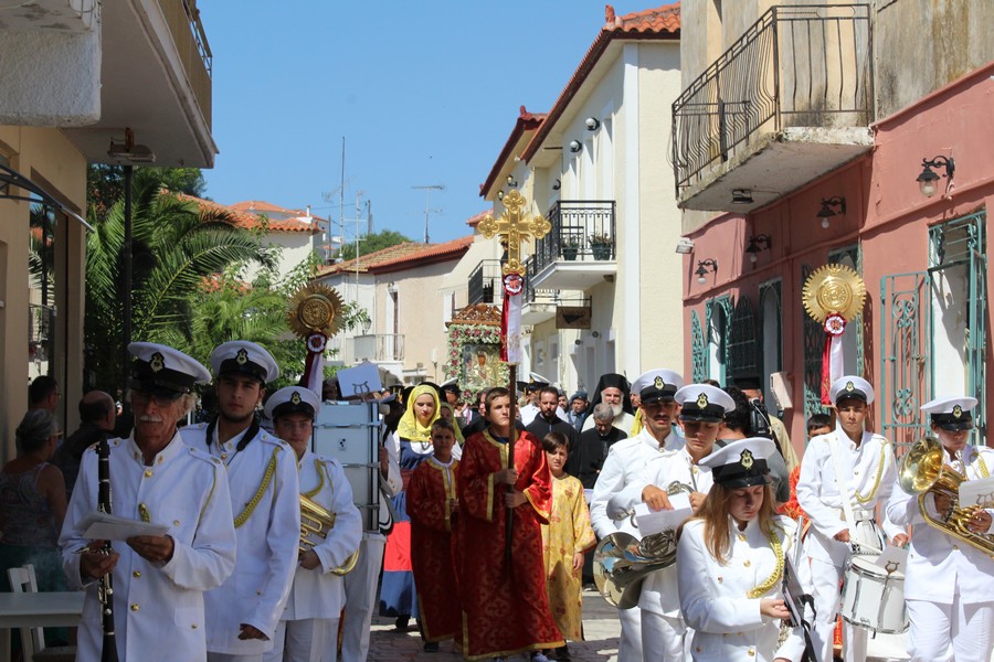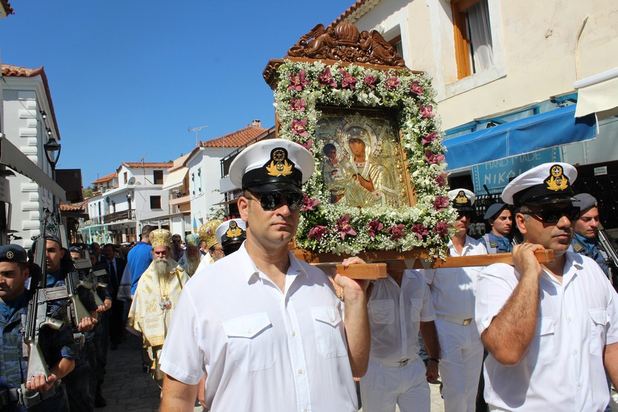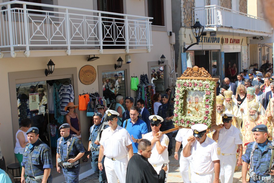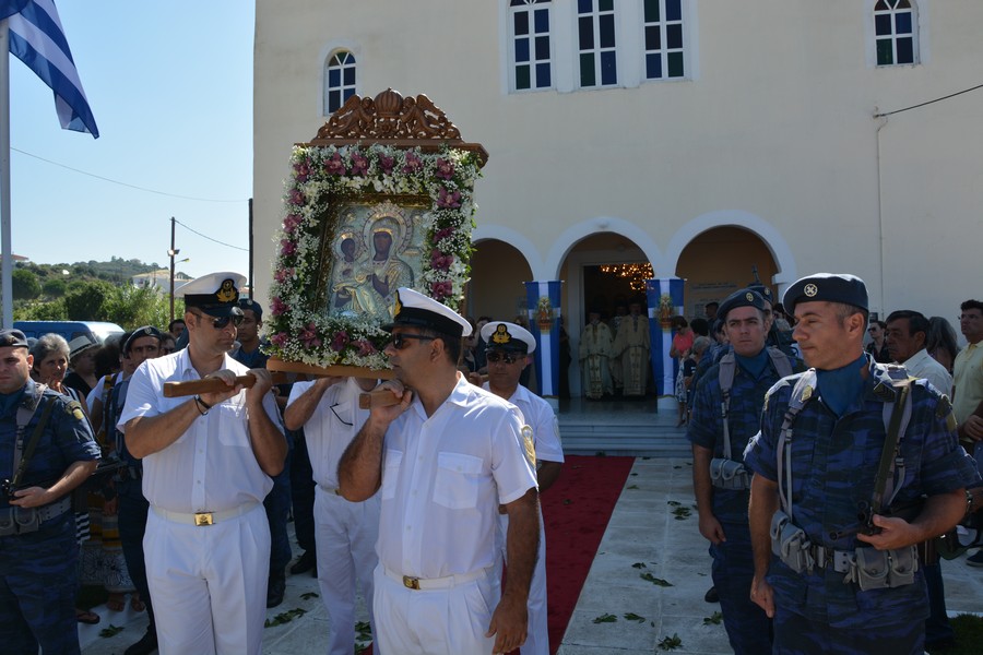 Ακολούθησε λιτάνευση της εικόνας της Παναγίας, την οποία έφεραν επ’ ώμου άνδρες του Λιμενικού Σώματος. Τιμές απέδωσαν στρατιωτικό άγημα της 120 Πτέρυγα Εκπαίδευσης Αέρος Καλαμάτας και η Φιλαρμονική του Δήμου Πύλου-Νέστορος.
