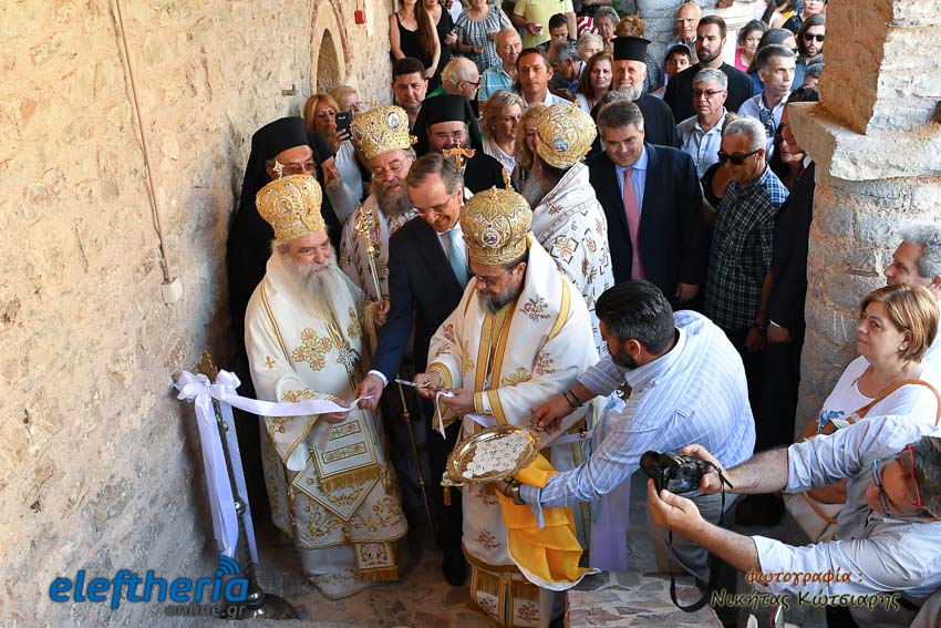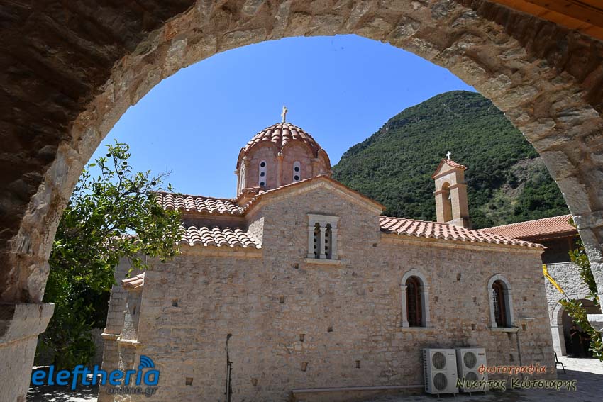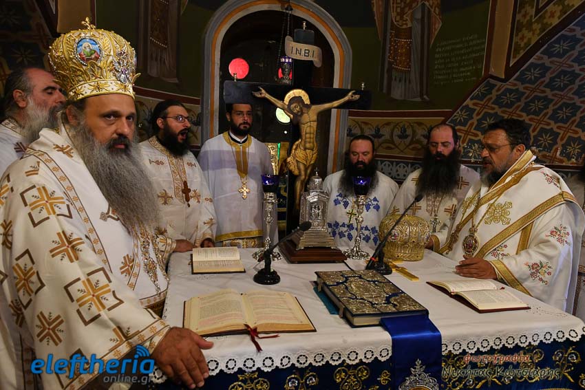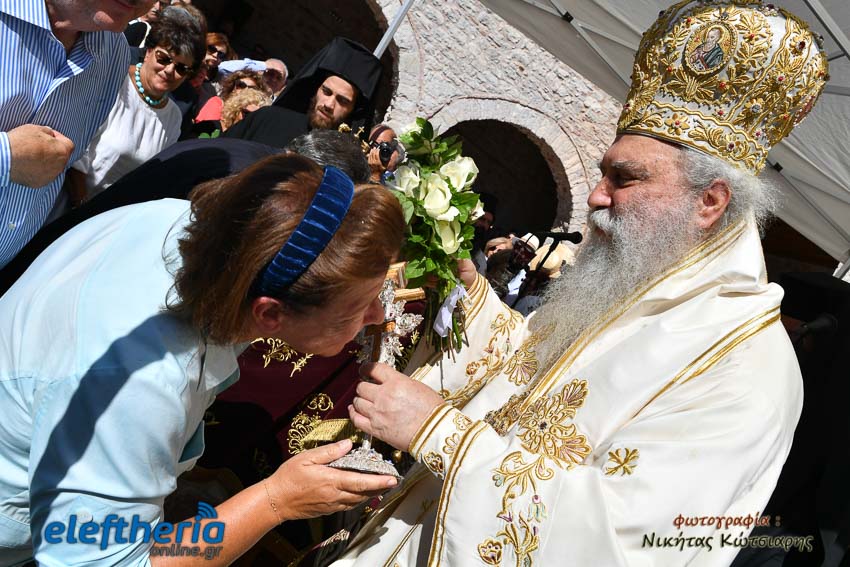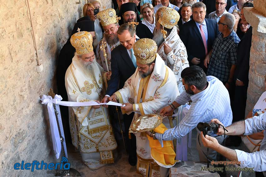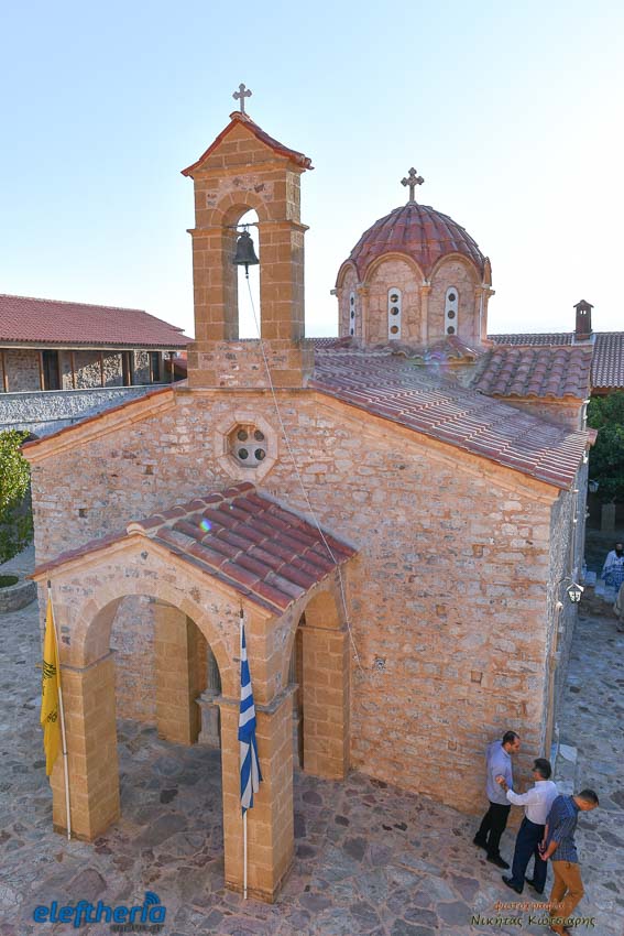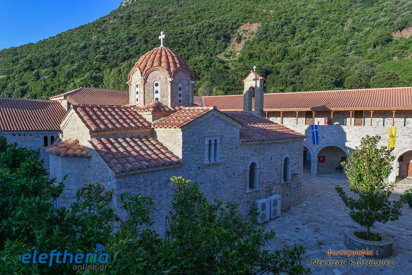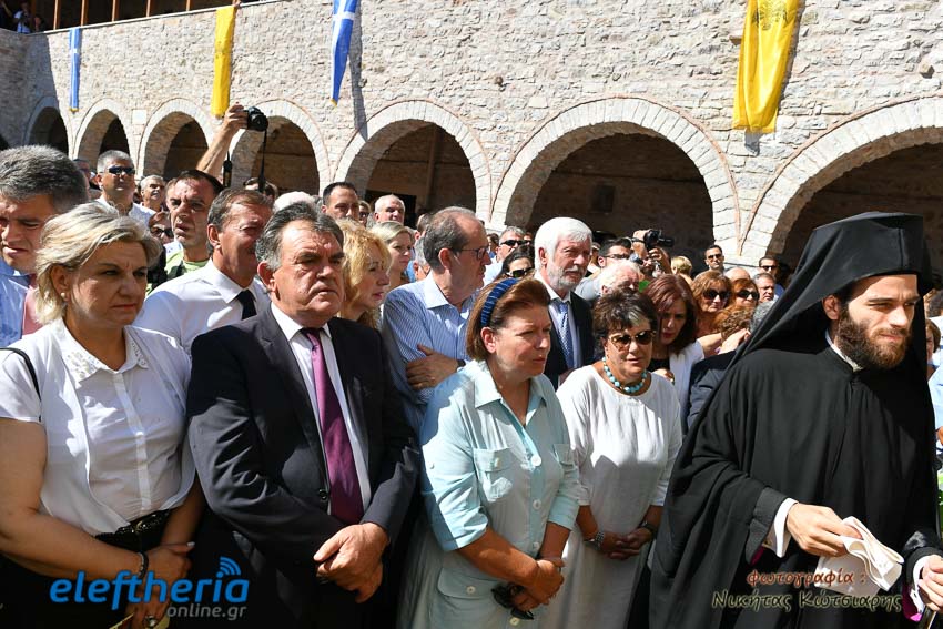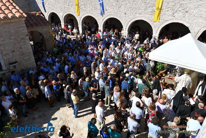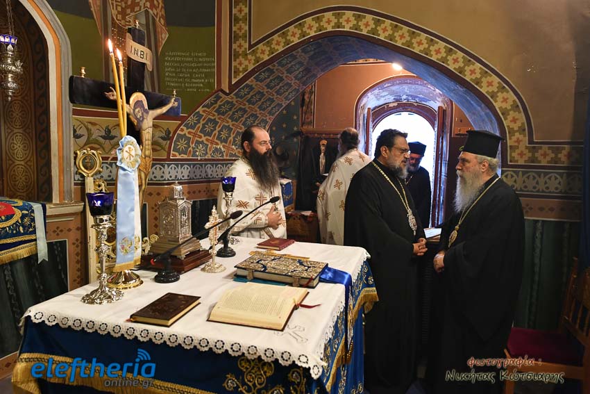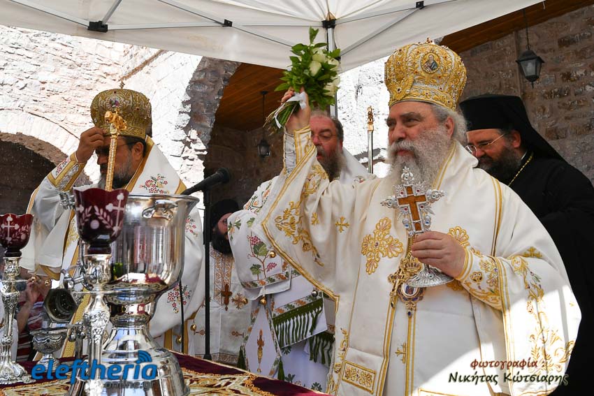 Στον όρθρο και την πολυαρχιερατική θεία λειτουργία στο Καθολικό της μονής συλλειτούργησαν τέσσερις μητροπολίτες, οι Μονεμβασίας και Σπάρτης Ευστάθιος, Καρθαγένης Μελέτιος, Σταγών και Μετεώρων Θεόκλητος και Μεσσηνίας Χρυσόστομος. Πιο συγκεκριμένα, στην ακολουθία του όρθρου χοροστάτησε ο μητροπολίτης Σταγών και Μετεώρων Θεόκλητος, ενώ την πανηγυρική θεία λειτουργία τέλεσε ο μητροπολίτης Μονεμβασίας και Σπάρτης Ευστάθιος, συλλειτουργούντων των μητροπολιτών Καρθαγένης Μελετίου, Σταγών και Μετεώρων Θεοκλήτου και Μεσσηνίας κ. Χρυσοστόμου. Στη συνέχεια τελέσθηκε ο αγιασμός, ακολούθησαν τα αποκαλυπτήρια της κτιτορικής επιγραφής της μονής και η είσοδος στο κτηριακό συγκρότημα.