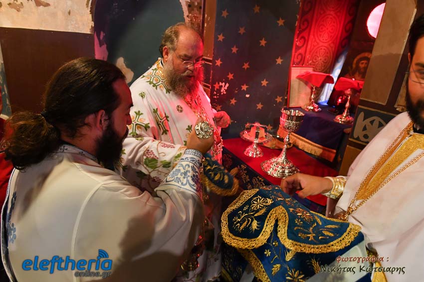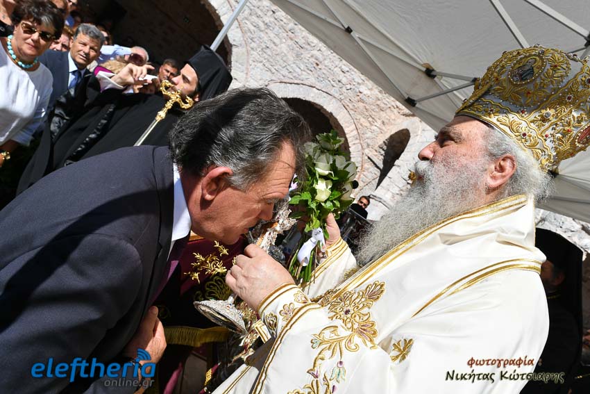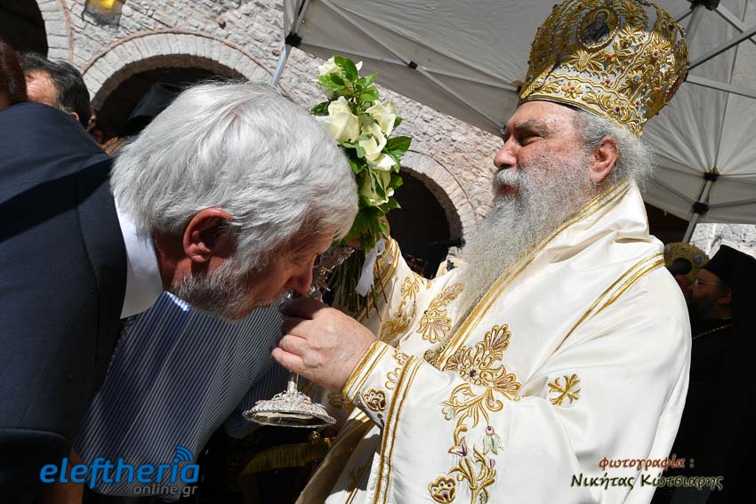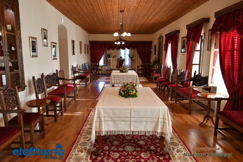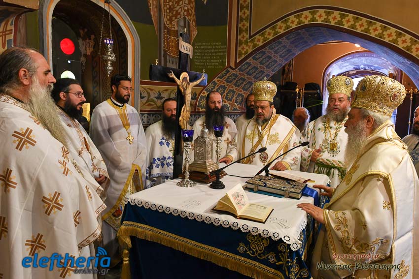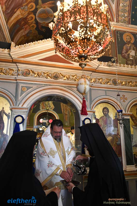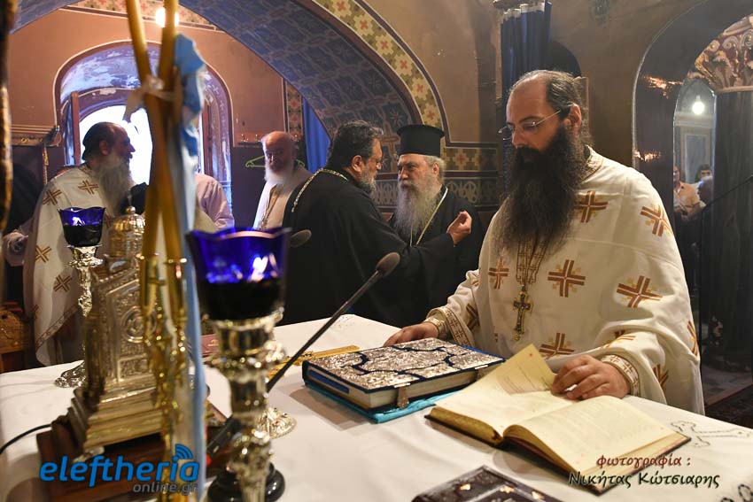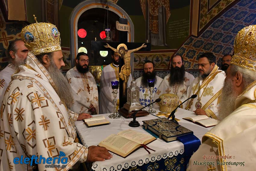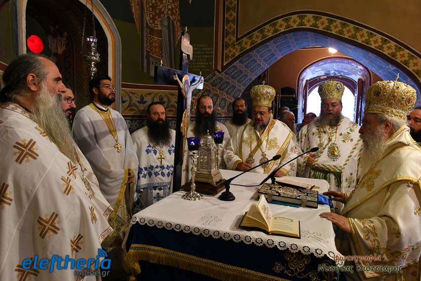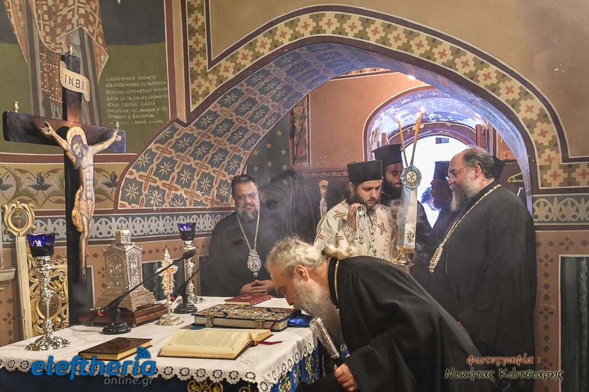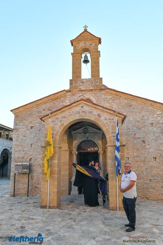 Στον όρθρο και την πολυαρχιερατική θεία λειτουργία στο Καθολικό της μονής συλλειτούργησαν τέσσερις μητροπολίτες, οι Μονεμβασίας και Σπάρτης Ευστάθιος, Καρθαγένης Μελέτιος, Σταγών και Μετεώρων Θεόκλητος και Μεσσηνίας Χρυσόστομος. Πιο συγκεκριμένα, στην ακολουθία του όρθρου χοροστάτησε ο μητροπολίτης Σταγών και Μετεώρων Θεόκλητος, ενώ την πανηγυρική θεία λειτουργία τέλεσε ο μητροπολίτης Μονεμβασίας και Σπάρτης Ευστάθιος, συλλειτουργούντων των μητροπολιτών Καρθαγένης Μελετίου, Σταγών και Μετεώρων Θεοκλήτου και Μεσσηνίας κ. Χρυσοστόμου. Στη συνέχεια τελέσθηκε ο αγιασμός, ακολούθησαν τα αποκαλυπτήρια της κτιτορικής επιγραφής της μονής και η είσοδος στο κτηριακό συγκρότημα.