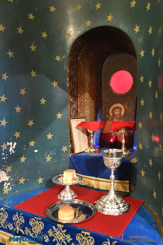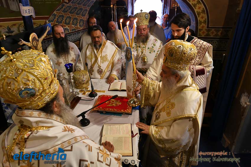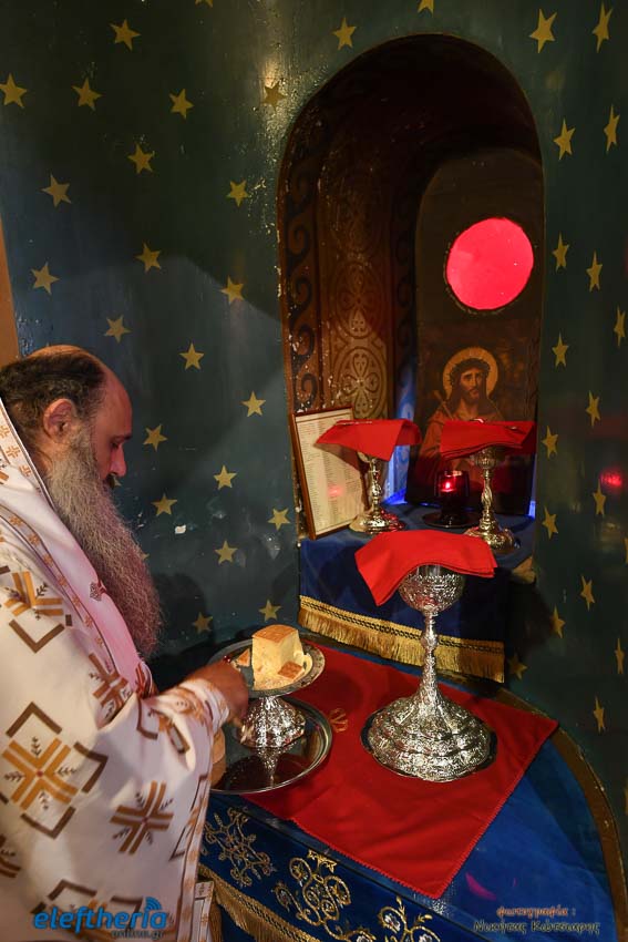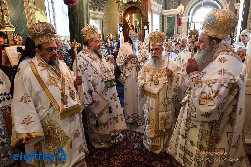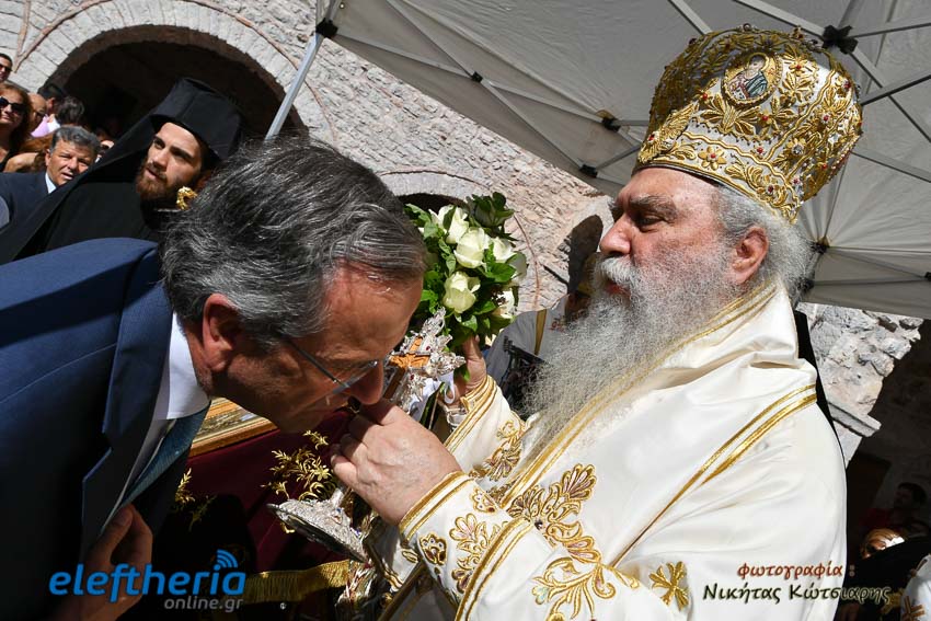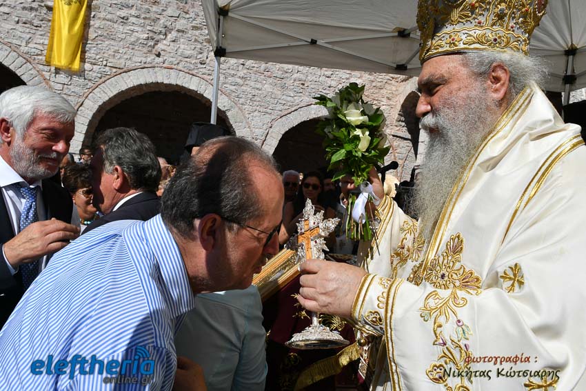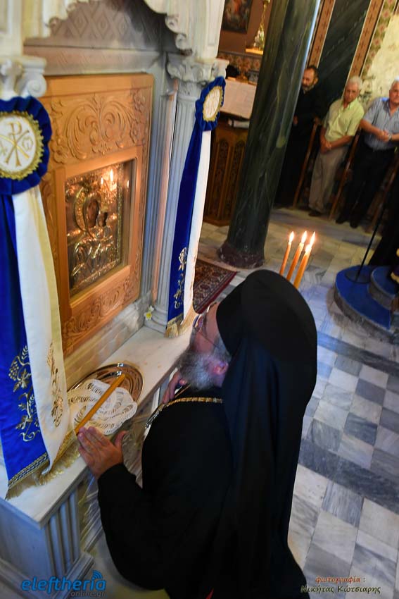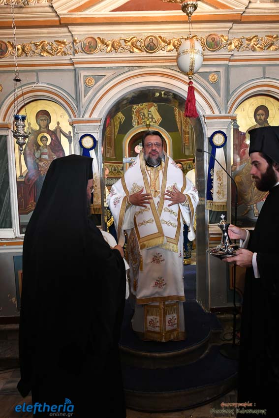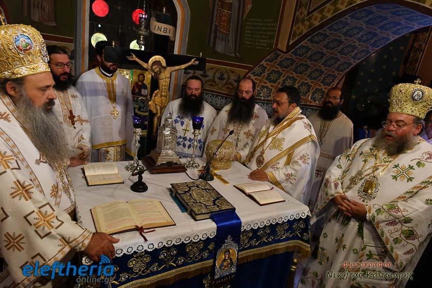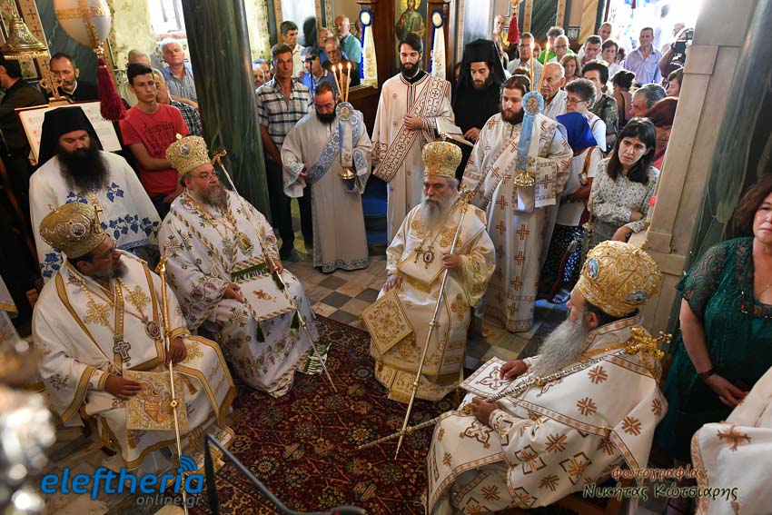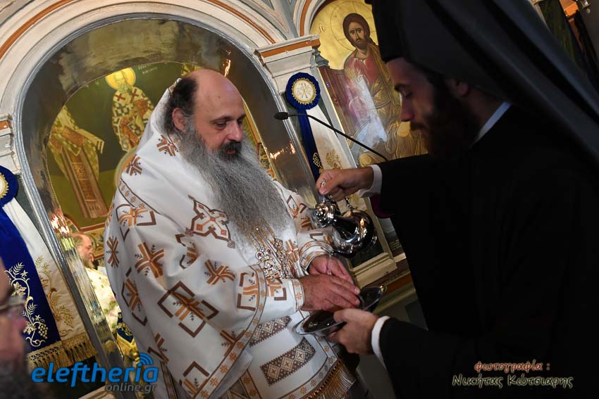 Στον όρθρο και την πολυαρχιερατική θεία λειτουργία στο Καθολικό της μονής συλλειτούργησαν τέσσερις μητροπολίτες, οι Μονεμβασίας και Σπάρτης Ευστάθιος, Καρθαγένης Μελέτιος, Σταγών και Μετεώρων Θεόκλητος και Μεσσηνίας Χρυσόστομος. Πιο συγκεκριμένα, στην ακολουθία του όρθρου χοροστάτησε ο μητροπολίτης Σταγών και Μετεώρων Θεόκλητος, ενώ την πανηγυρική θεία λειτουργία τέλεσε ο μητροπολίτης Μονεμβασίας και Σπάρτης Ευστάθιος, συλλειτουργούντων των μητροπολιτών Καρθαγένης Μελετίου, Σταγών και Μετεώρων Θεοκλήτου και Μεσσηνίας κ. Χρυσοστόμου. Στη συνέχεια τελέσθηκε ο αγιασμός, ακολούθησαν τα αποκαλυπτήρια της κτιτορικής επιγραφής της μονής και η είσοδος στο κτηριακό συγκρότημα.