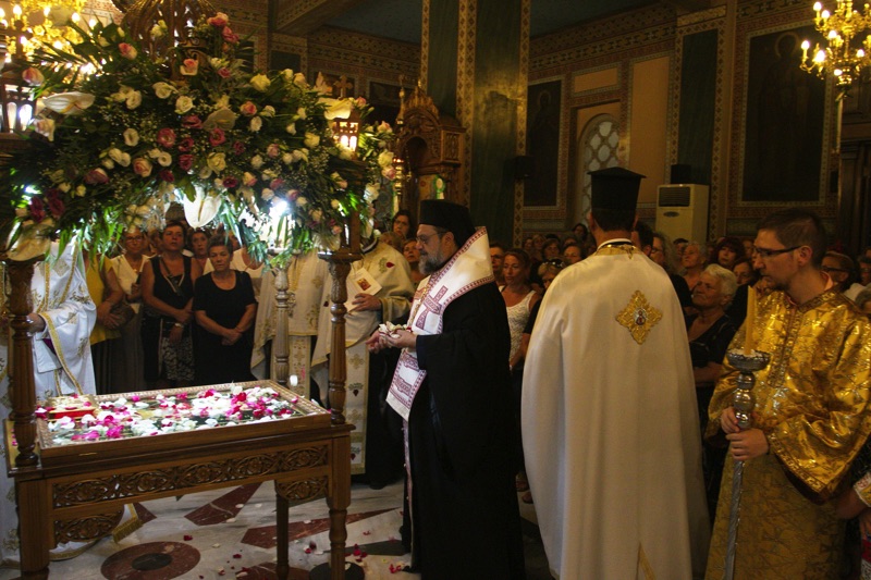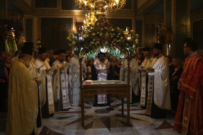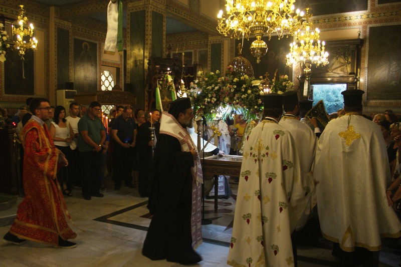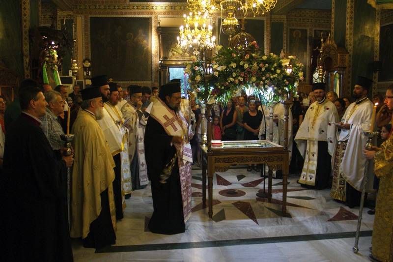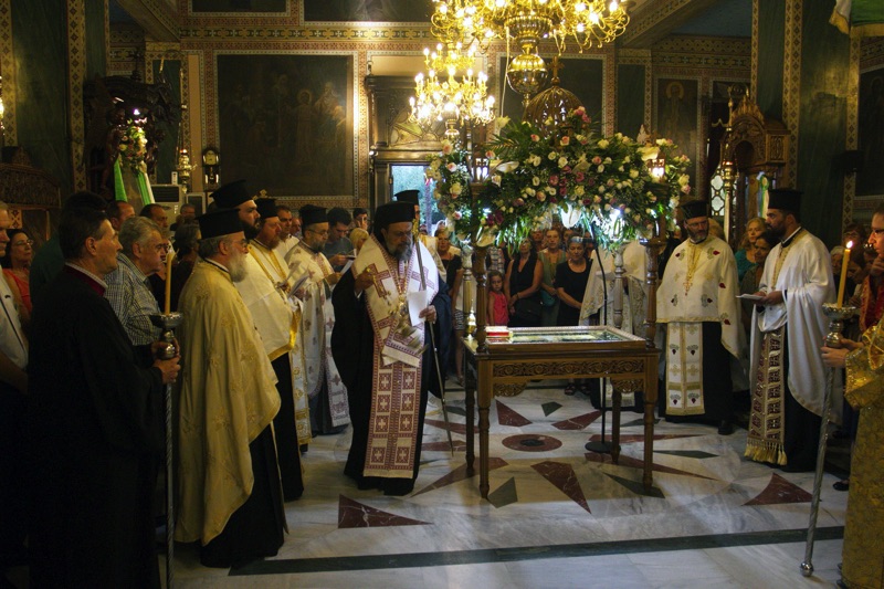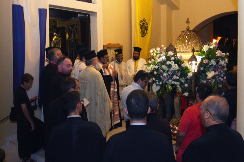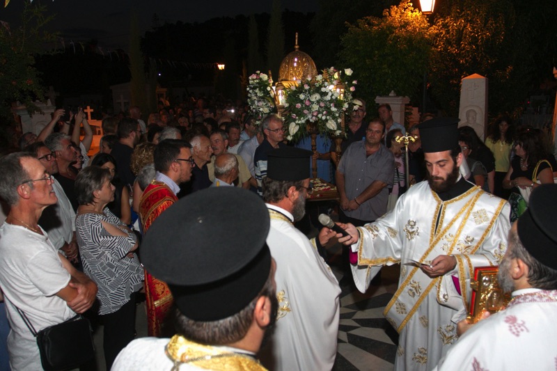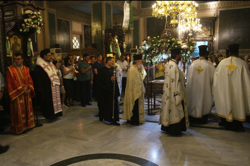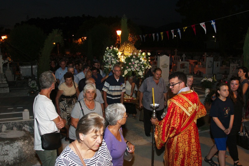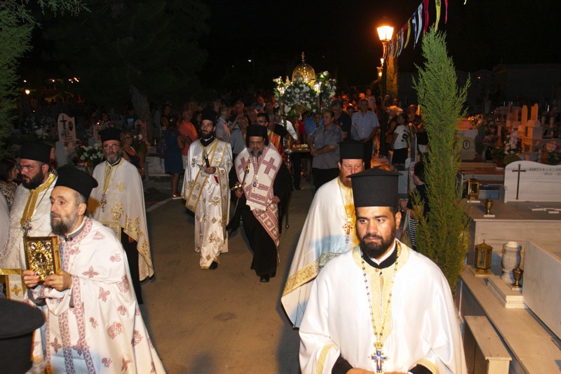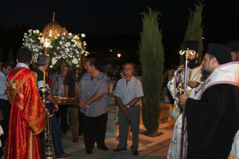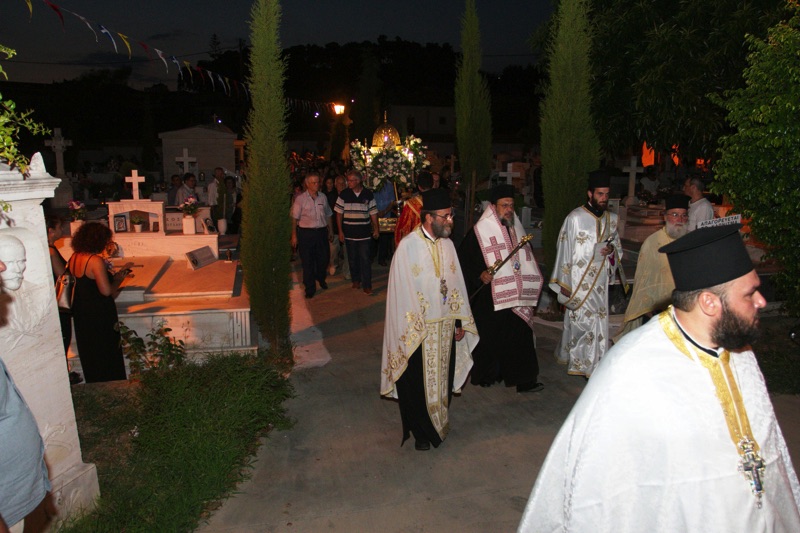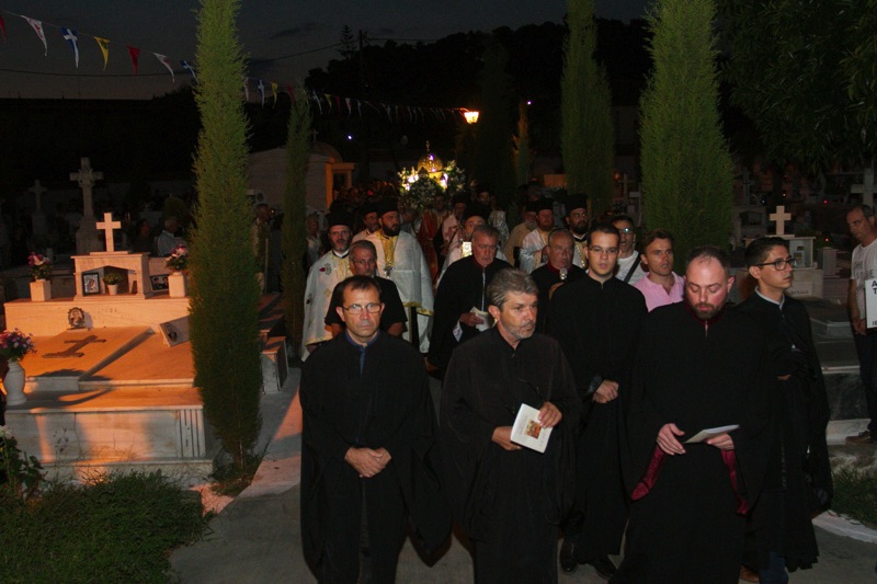 Στον εσπερινό το βράδυ της Τρίτης στον εσπερινό στον εορτάζοντα Κοιμητηριακό Ιερό Ναό Κοιμήσεως της Θεοτόκου Καλαμάτας χοροστάτησε ο μητροπολίτης Μεσσηνίας Χρυσόστομος συμπαραστατούμενος από πλειάδα ιερέων. Κατά τον Εσπερινό ψάλθηκαν τα Εγκώμια στην Υπεραγία Θεοτόκο και ακολούθησε λιτάνευση του Επιταφίου της, εντός του αύλειου χώρου του Κοιμητηρίου.