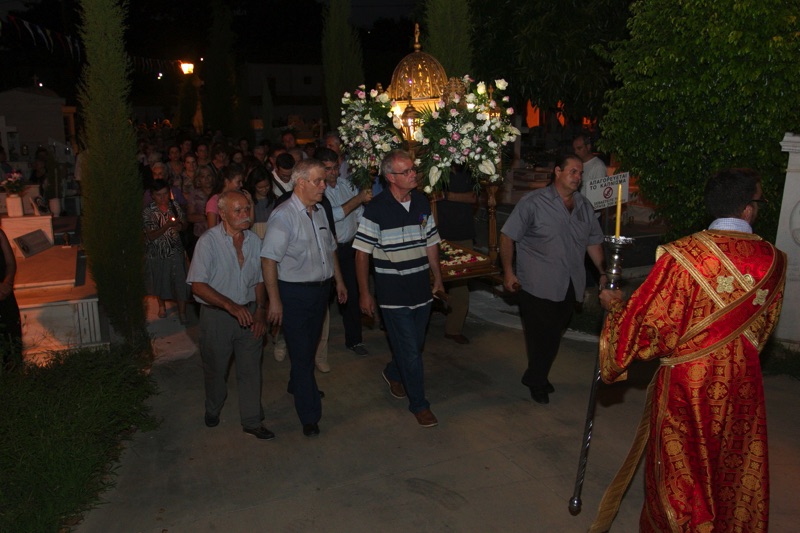 Το βράδυ της παραμονής μετά τον εσπερινό, πραγματοποιήθηκε περιφορά της εικόνας της Παναγίας στους κεντρικούς δρόμους του χωριού. Τιμές απέδωσε η Δημοτική Φιλαρμονική Καλαμάτας, ενώ την εικόνα μετέφεραν δημοτικοί αστυνομικοί και πυροσβέστες.