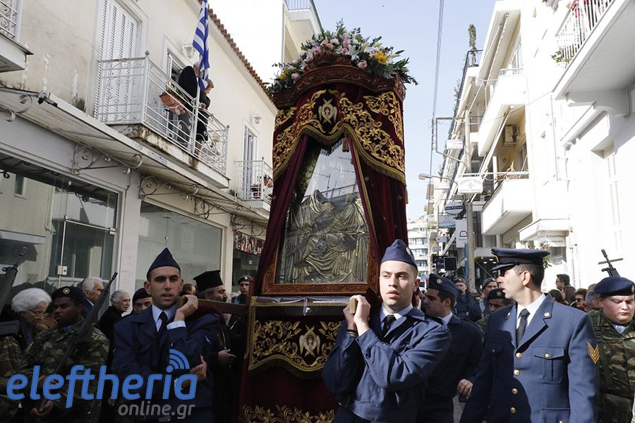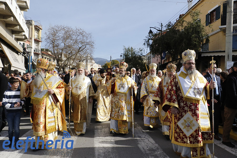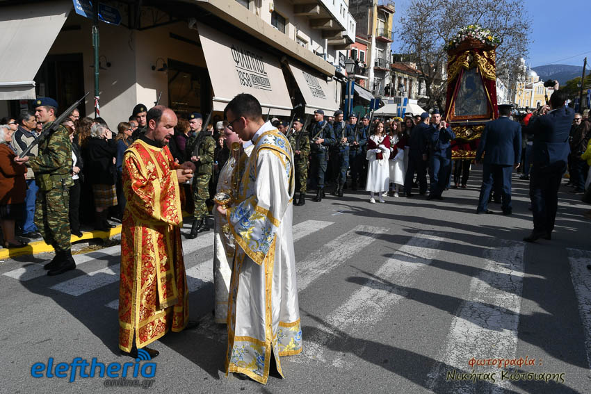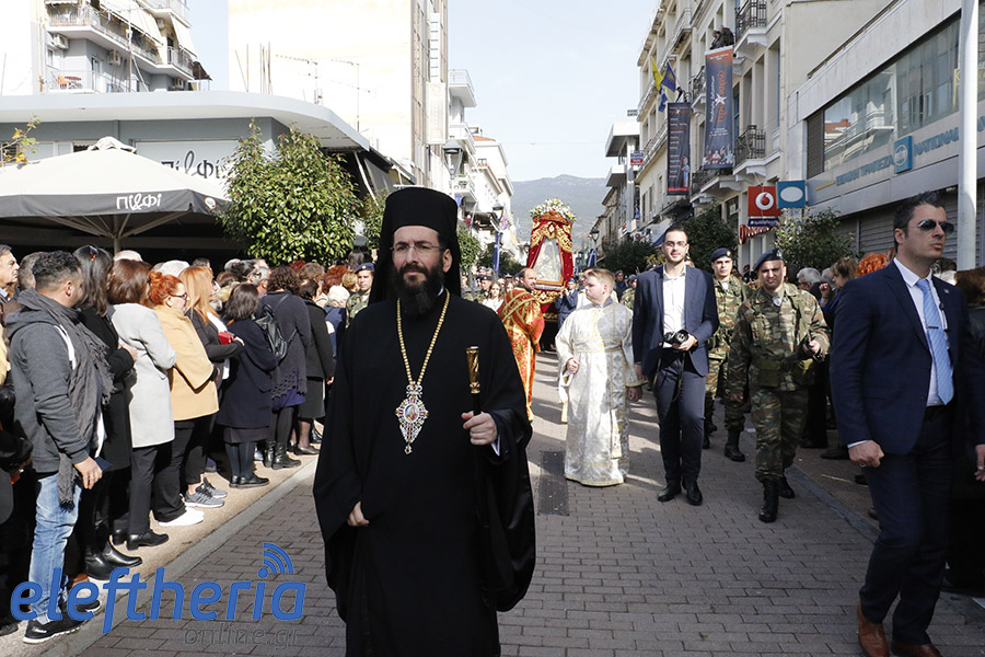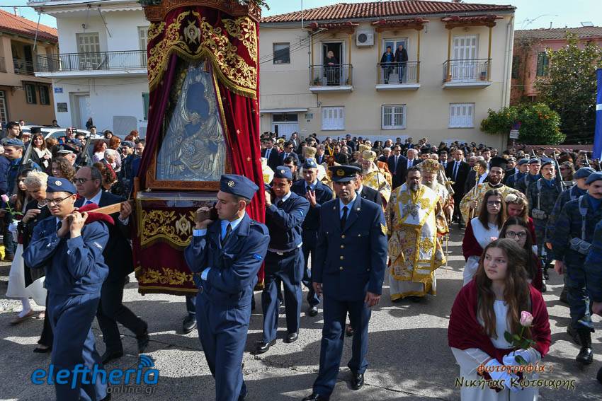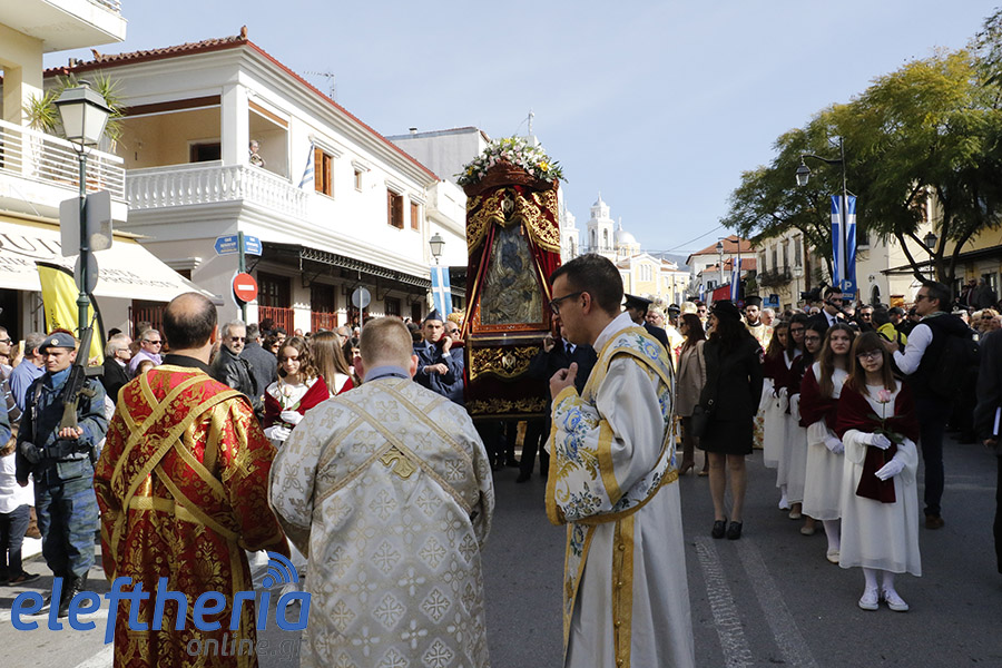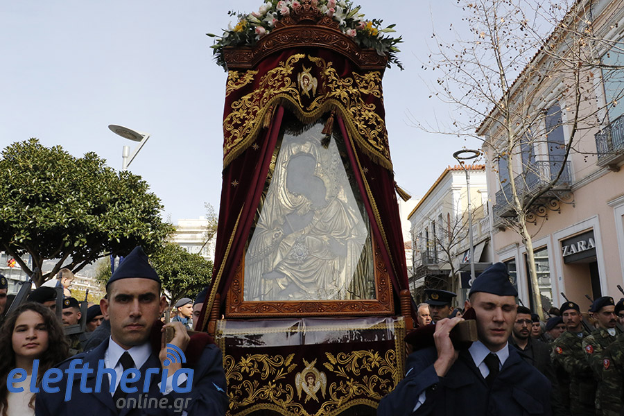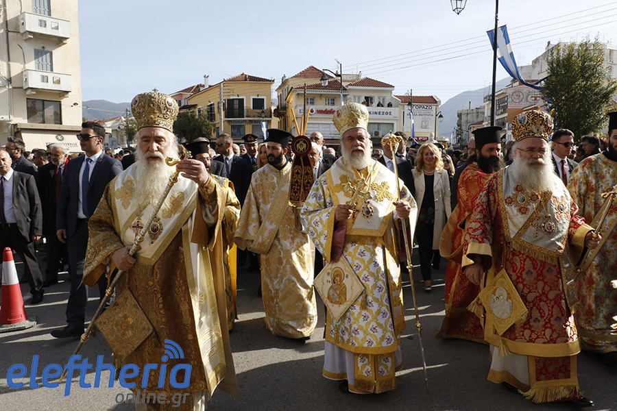 Το πρωί τελέστηκε ο όρθρος και η πολυαρχιερατική θεία λειτουργία και στις 11 ξεκίνησε η λιτάνευση της εικόνας της Παναγίας, στους κεντρικούς δρόμους της Καλαμάτας.