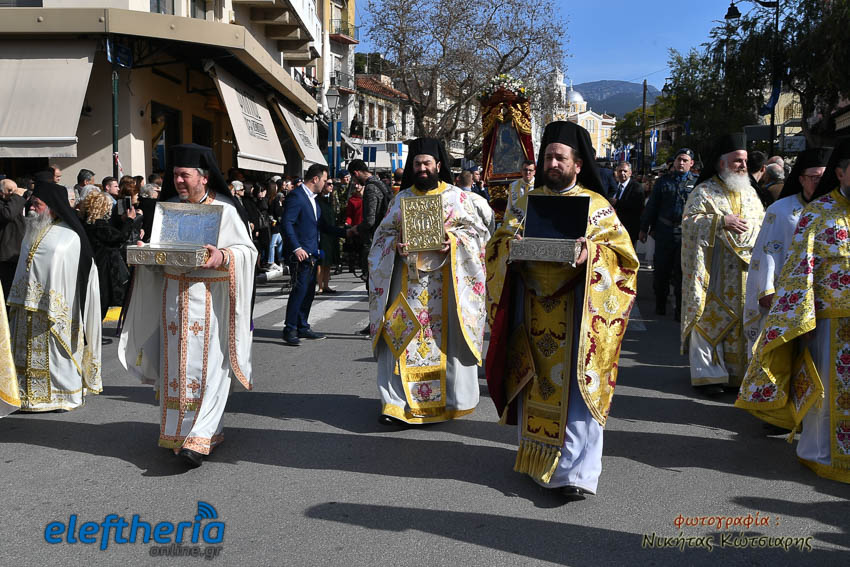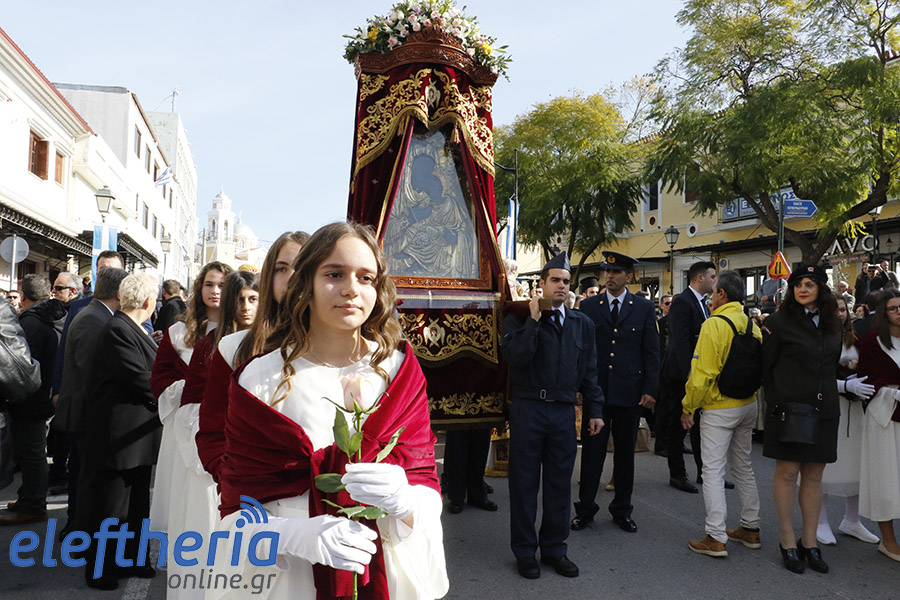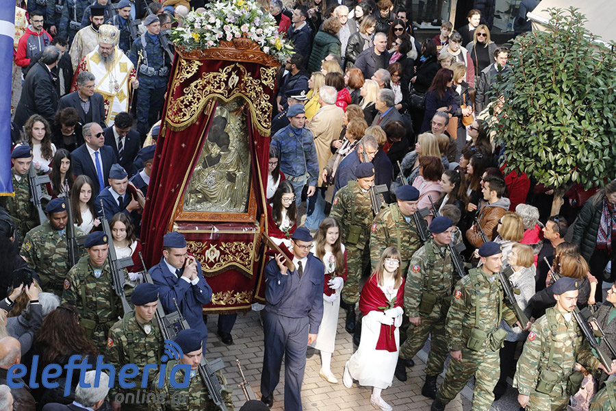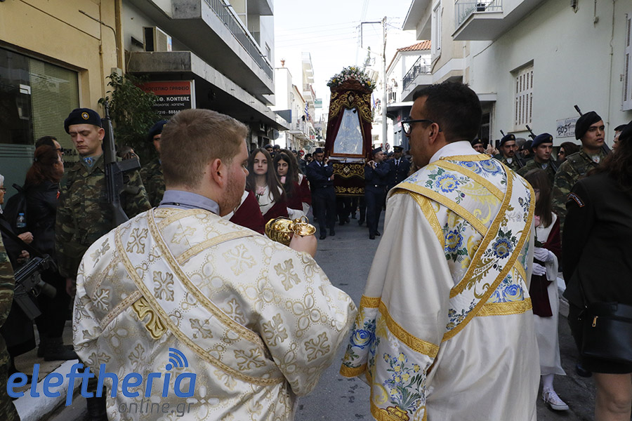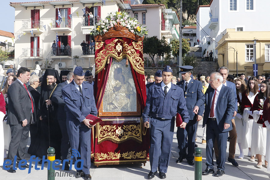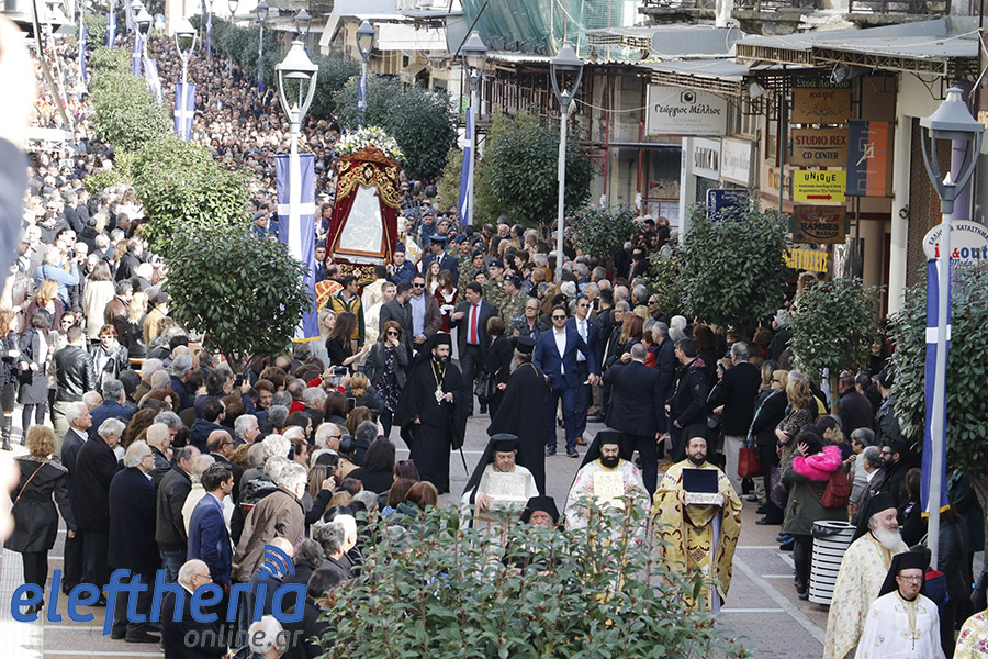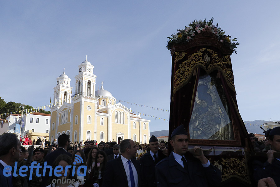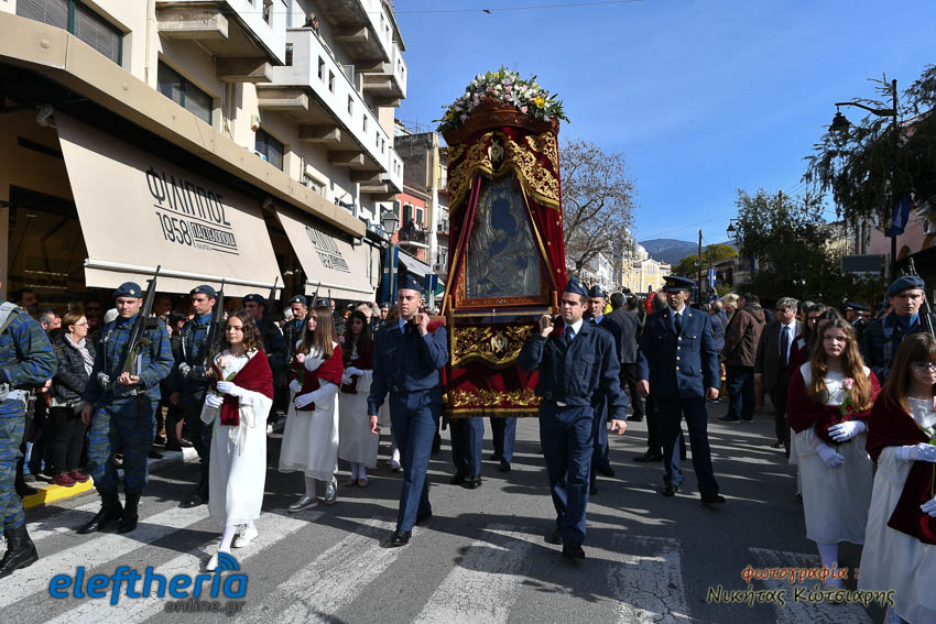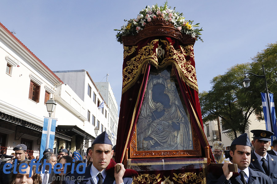 Το πρωί τελέστηκε ο όρθρος και η πολυαρχιερατική θεία λειτουργία και στις 11 ξεκίνησε η λιτάνευση της εικόνας της Παναγίας, στους κεντρικούς δρόμους της Καλαμάτας.