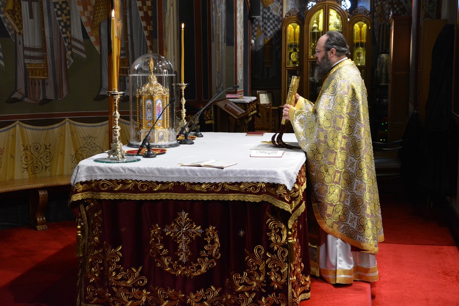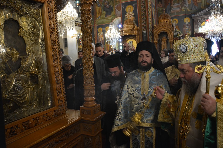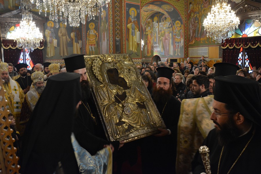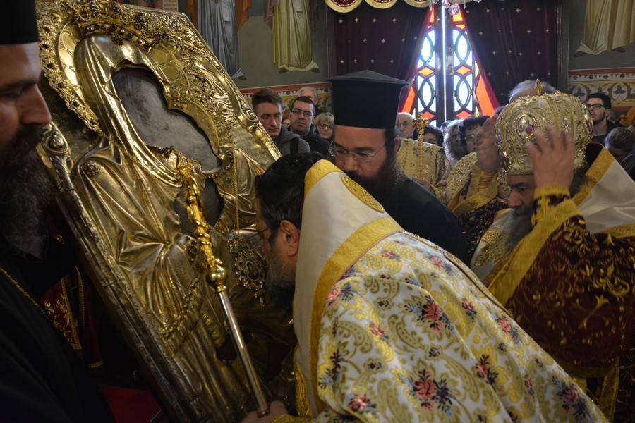 Ακολούθως τελέστηκε Ιερά Παράκληση στην Παναγία και η θαυματουργή Εικόνα της μεταφέρθηκε από το θρόνο λιτάνευσης στο μόνιμο θρόνο της.