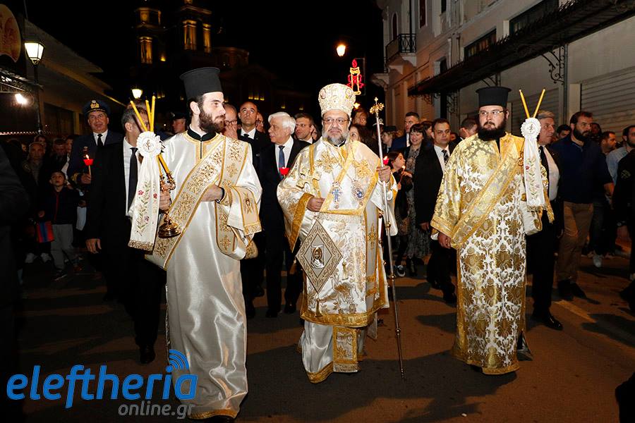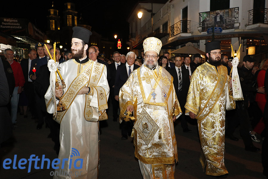 Στην συνέχεια υπό τους ήχους της Δημοτικής Φιλαρμονικής, ο κ. Παυλόπουλος ακολούθησε την περιφορά του Επιταφίου στο κέντρο της Καλαμάτας, όπου προέστη ο μητροπολίτης Μεσσηνίας Χρυσόστομος. Κατά την καθιερωμένη συνάντηση των Επιταφίων Υπαπαντής και Αγίου Νικολάου μάλιστα ο Πρόεδρος δεν έχασε την ευκαιρία να χαιρετήσει Καλαματιανούς και να ανταλλάξουν ευχές για τις Άγιες ημέρες του Πάσχα.