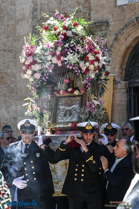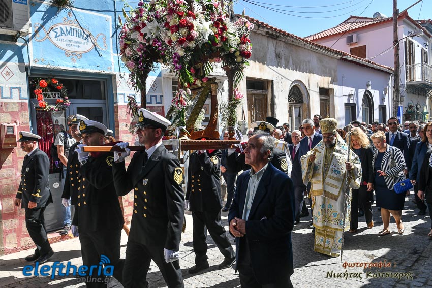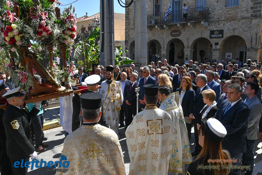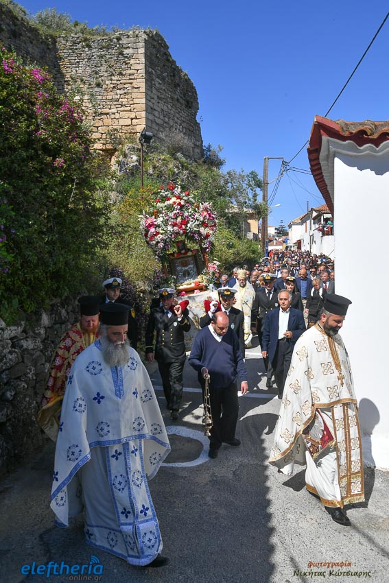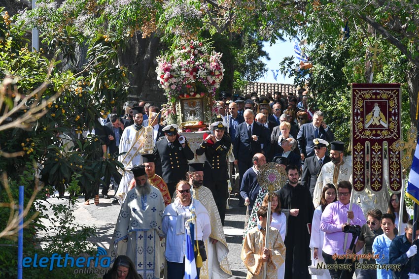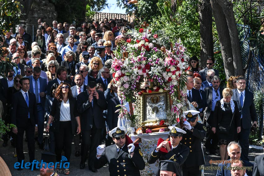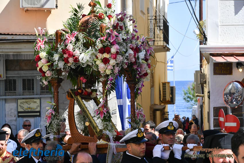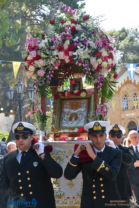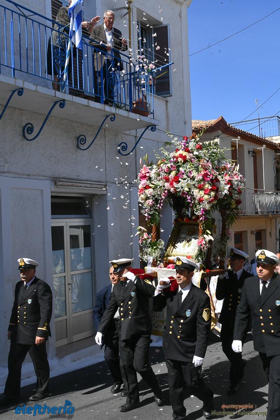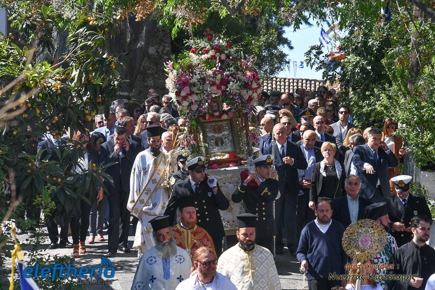 Την εικόνα της Παναγίας Ελεήστριας μετέφεραν άνδρες του Λιμεναρχείου Κορώνης, ενώ τιμές απέδωσε η Δημοτική Φιλαρμονική Πύλου - Νέστορος.