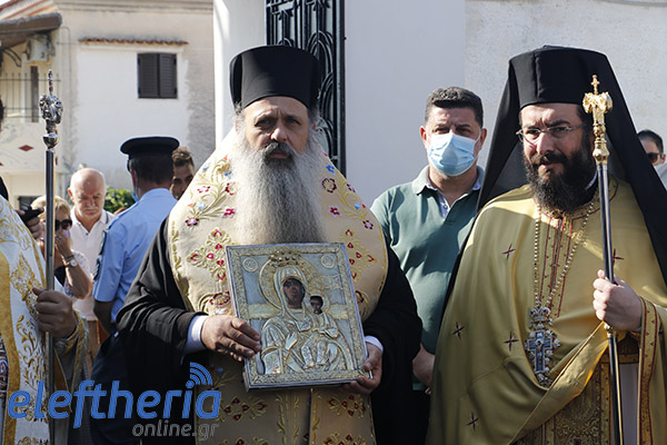 Λόγω των μέτρων για την προστασία από τον κορονοϊό, δεν έγινε η μεταμεσονύχτια πομπή από το μοναστήρι και η υποδοχή στην πόλη έγινε χωρίς με λιτανεία.