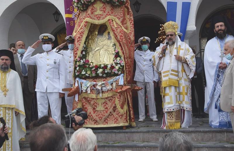 Ο μητροπολίτης απευθυνόμενος στους πιστούς επικαλέστηκε τη χάρη της Παναγίας για όλο τον κόσμο και για τη γρήγορη απαλλαγή από τη δοκιμασία της πανδημίας. Επίσης συνέστησε πιστή εφαρμογή στα μέτρα προφύλαξης και ιδιαίτερα στη χρήση μάσκας από όλους, ενώ κατέκρινε τους όποιους τυχόντες, οι οποίοι υποστηρίζουν ότι δεν υφίσταται η ασθένεια.