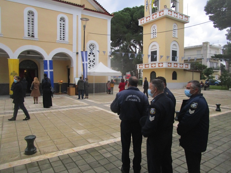 Έξω από το ναό υπήρχε διακριτική παρουσία αστυνομικών, που σε κάποιες περιπτώσεις χρειάστηκε να κάνει συστάσεις στους πιστούς για την αποφυγή του συνωστισμού.