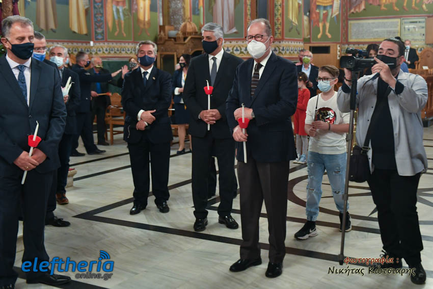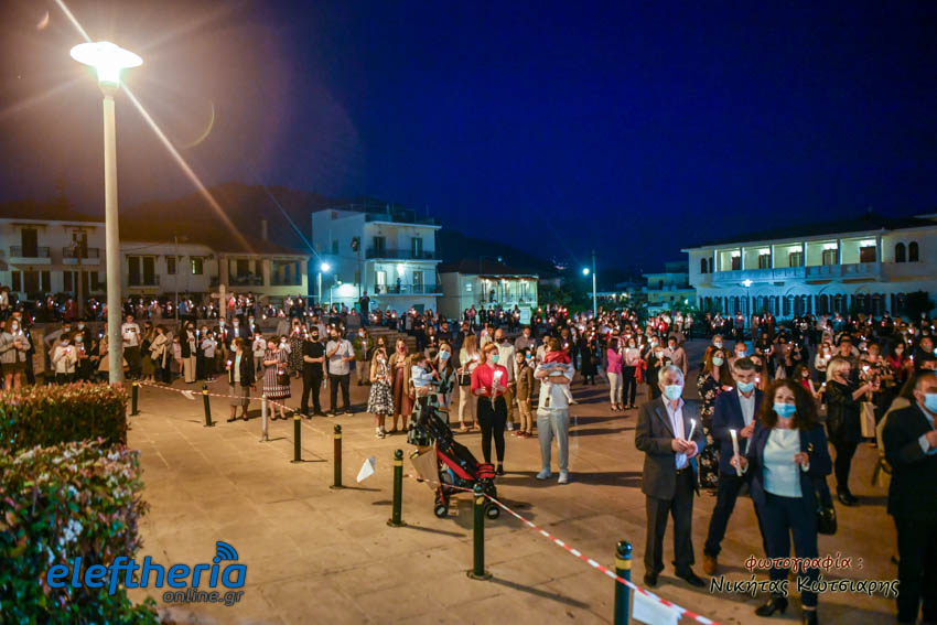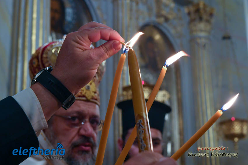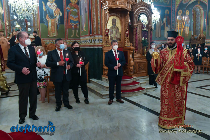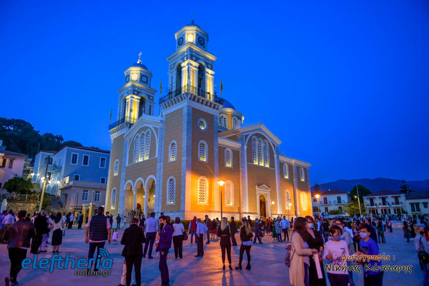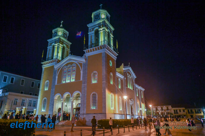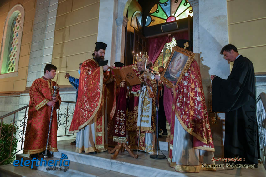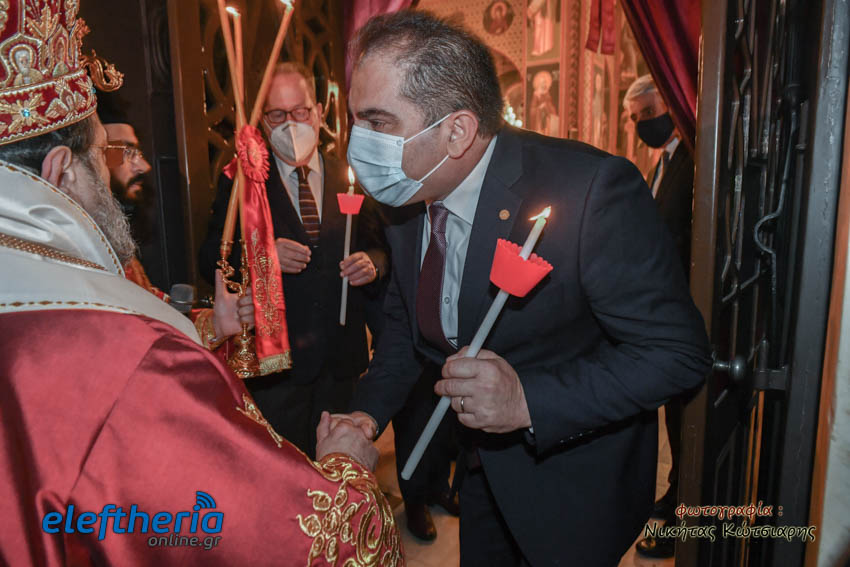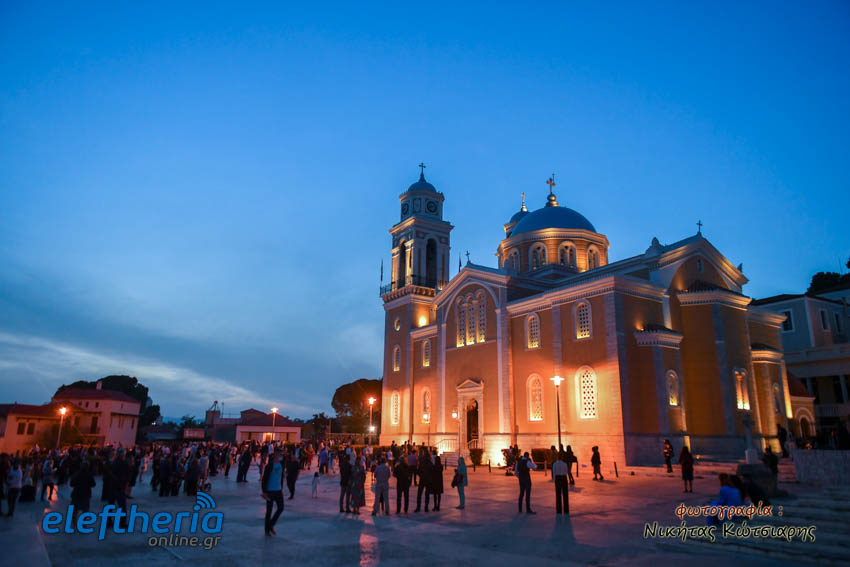 Αφού μετέδωσε το Άγιο Φως, προέστη της τελετής της Αναστάσεως στα προπύλαια του Μητροπολιτικού Ναού, παρουσία Εκπροσώπων Τοπικών Αρχών και Φορέων αλλά και των πιστών, οι οποίοι κρατούσαν αναμμένες λαμπάδες με το Αναστάσιμο Φως.