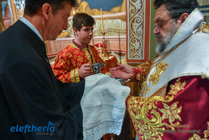Ο κ. Χρυσόστομος, μετά την ανάγνωση του Ιερού Ευαγγελίου και κάτω από τους ήχους των χαρμοσύνων κωδωνοκρουσιών, ανήγγειλε το «Χριστός Ανέστη», ευχόμενος χρόνια πολλά με υγεία και η χαρά της Αναστάσεως να πλημμυρίζει την καρδιά του κάθε ανθρώπου με αγάπη και ελπίδα.