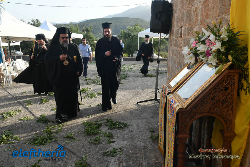 Ο π. Νεόφυτος στην ομιλία του αναφέρθηκε στην ιστορικότητα της μονής, τόπου πνευματικής άσκησης εκκλησιαστικών προσωπικοτήτων, όπως του αείμνηστου αρχιμανδρίτη και ιεραπόστολου Χρυσοστόμου Παπασαραντόπουλου, αλλά και ζωντανού κυττάρου των επαναστατικών χρόνων του 1821 και ορμητηρίου αγωνιστών, όπως του οπλαρχηγού αρχιμανδρίτη Γρηγορίου Δικαίου (Παπαφλέσσα). Ιδιαίτερη αναφορά έκανε στο πρόσωπο του μακαριστού μητροπολίτη Μεσσηνίας Χρυσοστόμου Δασκαλάκη, όπου στο χώρο της μονής ίδρυσε και λειτούργησε το Ασυλο Ανιάτων της Μητρόπολης. Ταυτόχρονα, ευχαρίστησε το μητροπολίτη που με αγάπη και πατρικό ενδιαφέρον ανταποκρίθηκε στο αίτημα των κατοίκων της περιοχής για το νέο ξεκίνημα της μονής.