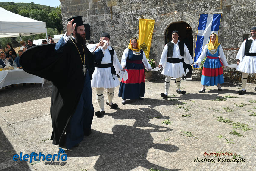 Στη συνέχεια, τελέσθηκε μνημόσυνο υπέρ αναπαύσεως των ψυχών του μακαριστού μητροπολίτη Μεσσηνίας Χρυσοστόμου Δασκαλάκη και του αρχιμανδρίτη Χρυσοστόμου Παπασαραντόπουλου. Ακολούθησε εκδήλωση με παραδοσιακούς χορούς από το χορευτικό τμήμα του Πολιτιστικού Συλλόγου της περιοχής “Οι Αμφειείς”, ενώ σε ανάμνηση της ημέρας φυτεύτηκε δέντρο στο προαύλιο της μονής από τους μητροπολίτες και τον δήμαρχο Καλαμάτας.