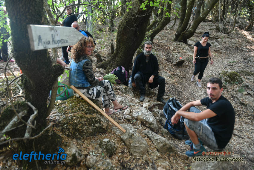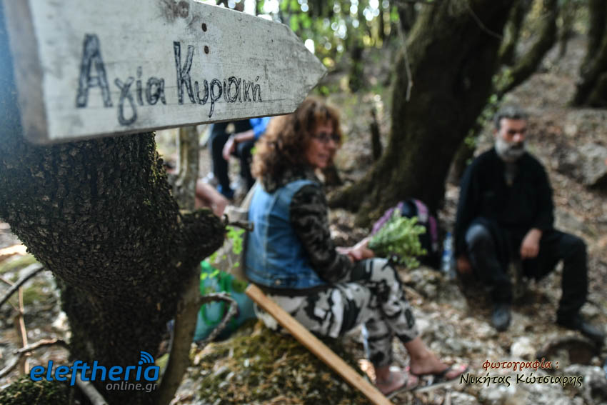 Ενα έθιμο που κρατάει στο χρόνο και περνά από γενιά σε γενιά... Ενα έθιμο που θέλει τους πιστούς να ανεβαίνουν τα ξημερώματα στο βουνό, κάνοντας πεζοπορία σε ένα μαγευτικό μονοπάτι. Η πεζοπορία ξεκινά από τους πρόποδες της Αγυιάς και διαρκεί κάτι παραπάνω από μια ώρα. Ετσι και την Τετάρτη, εορτή της Αγίας Κυριακής αρκετοί πιστοί τόσο από το Μουζάκι, όσο και από τις γύρω περιοχές (Πύργο, Γαργαλιάνους, Χώρα, Αμπελόφυτο κ.α.) ανέβηκαν στο ψηλό βουνό και παρακολούθησαν τη θεία λειτουργία.