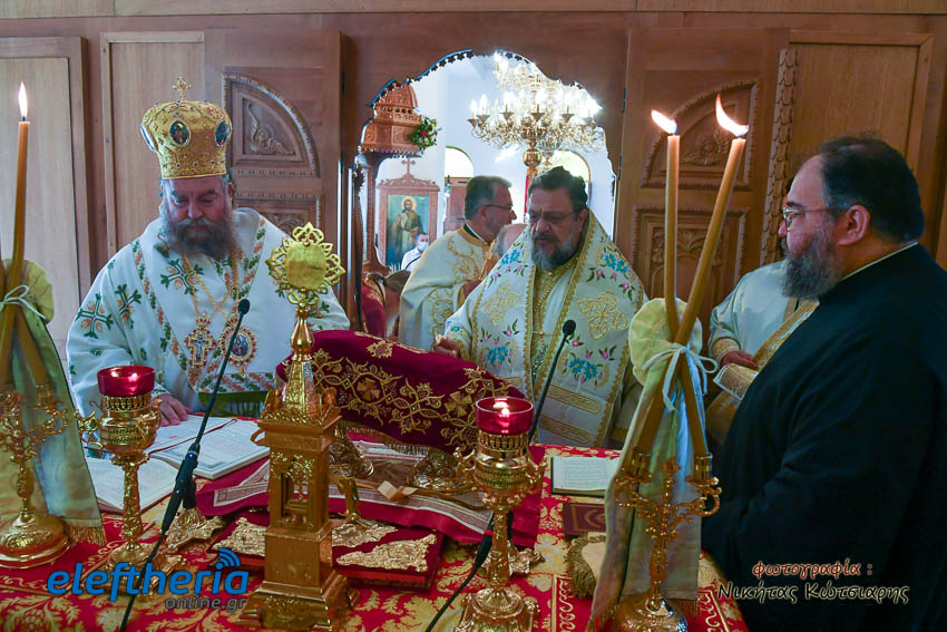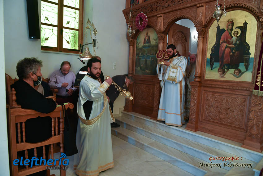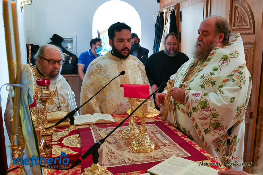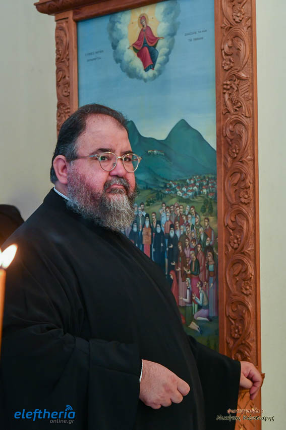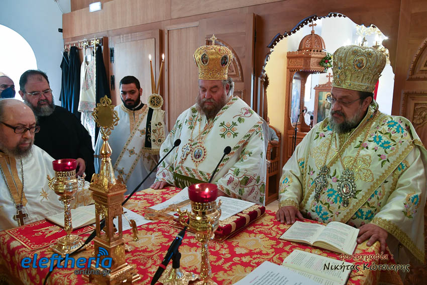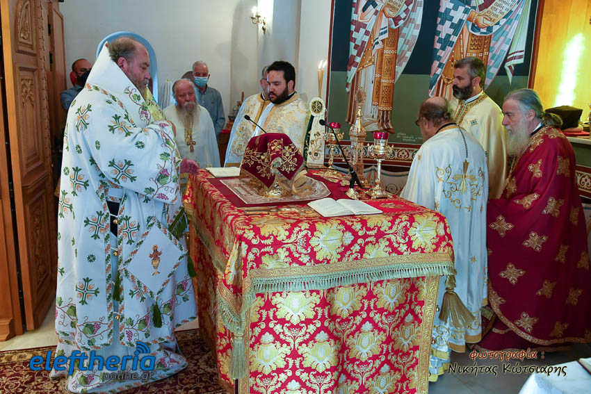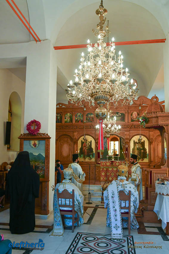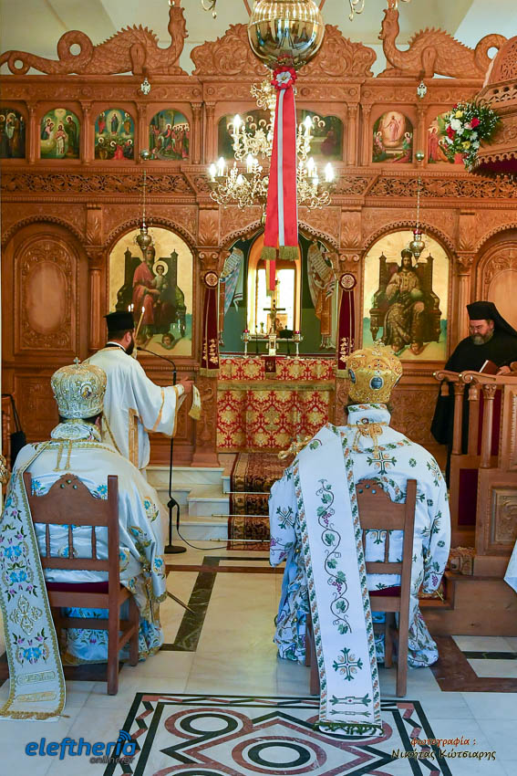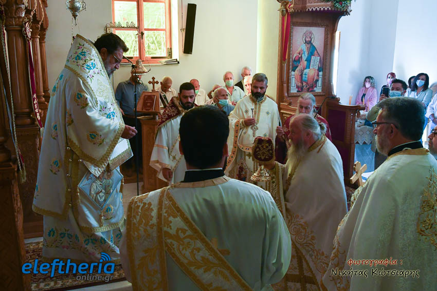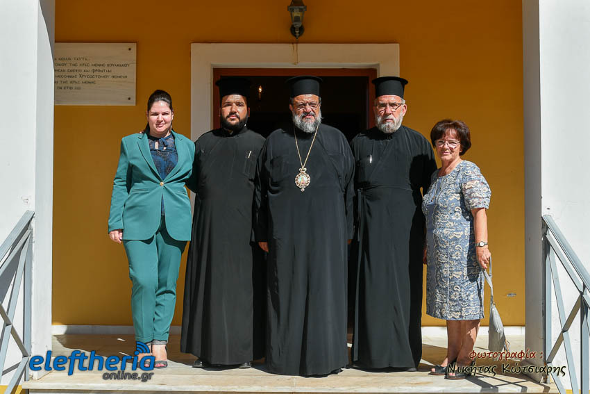 Τους αρχιερείς πλαισίωσαν ο καθηγούμενος της μονής αρχιμανδρίτης Προκόπιος Σμυρνής και ιερείς γειτονικών ενοριών.