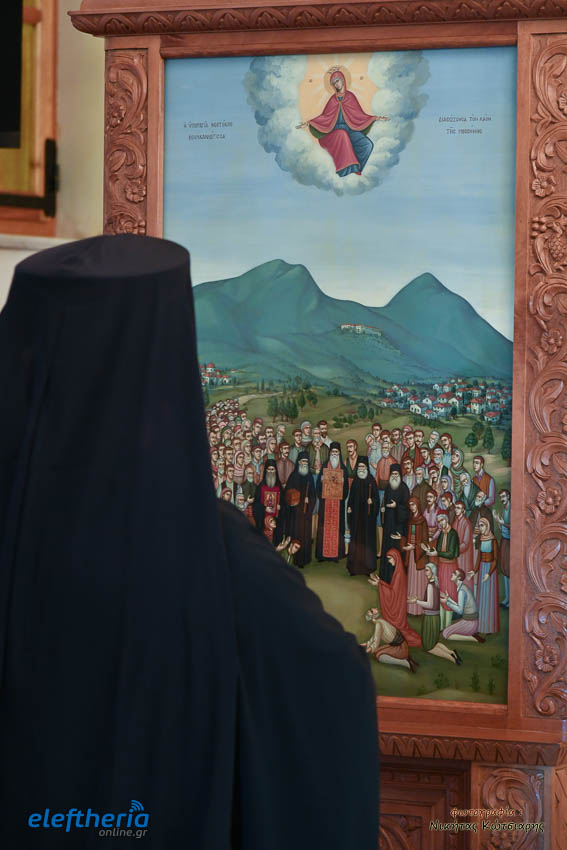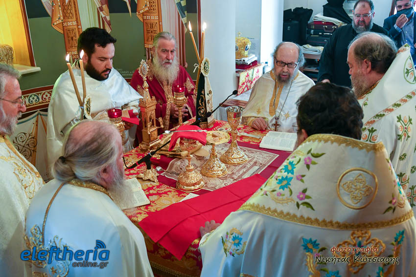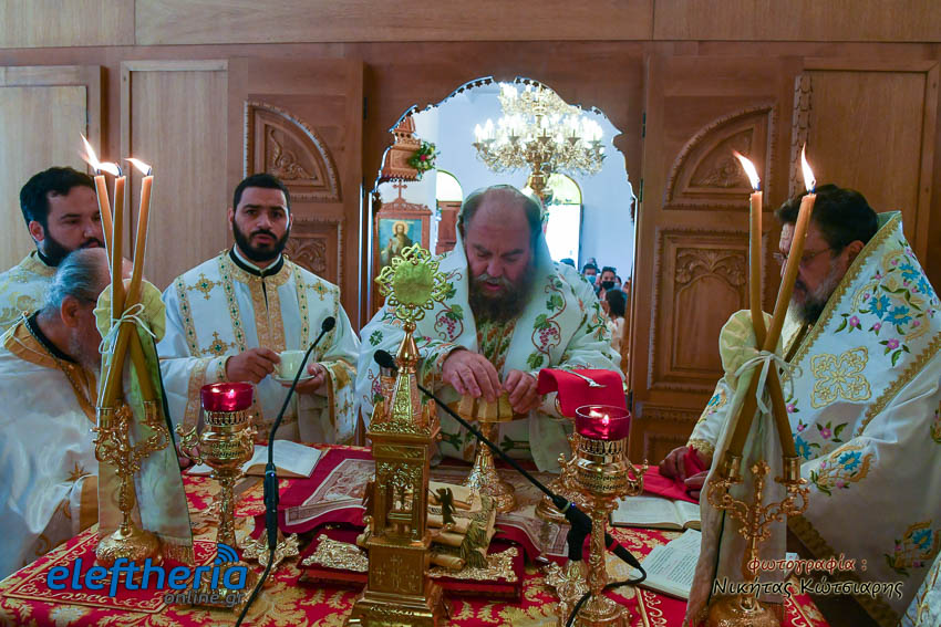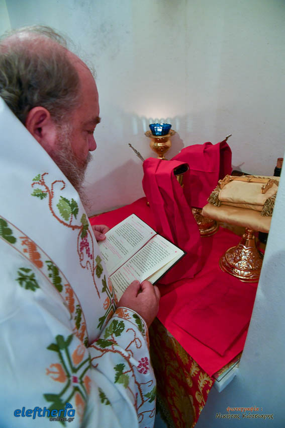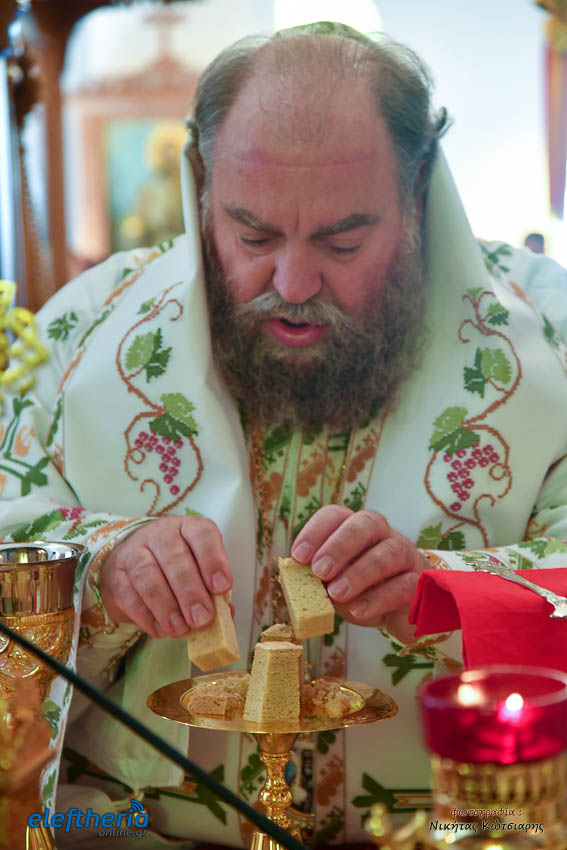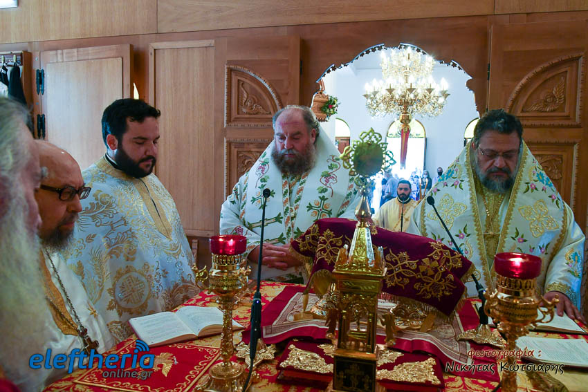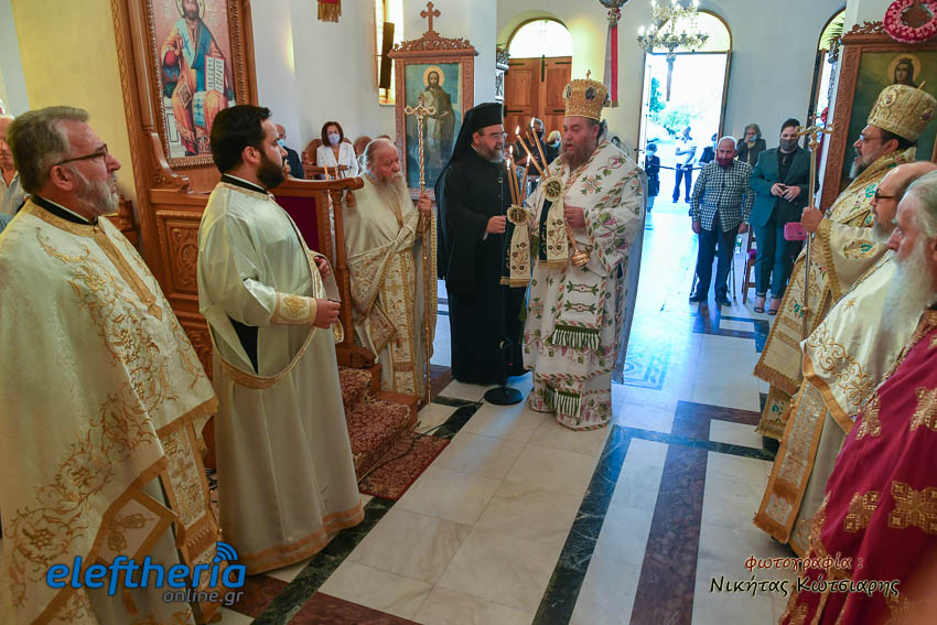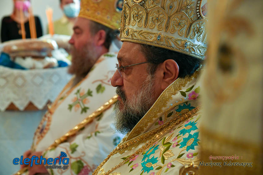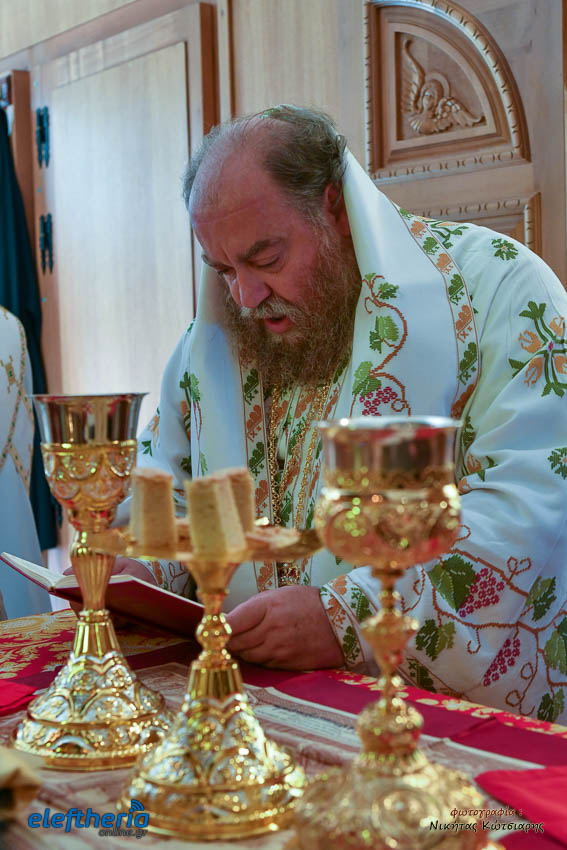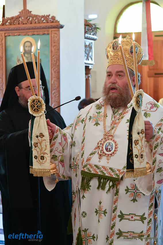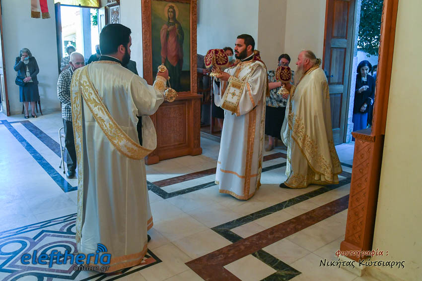 Τους αρχιερείς πλαισίωσαν ο καθηγούμενος της μονής αρχιμανδρίτης Προκόπιος Σμυρνής και ιερείς γειτονικών ενοριών.