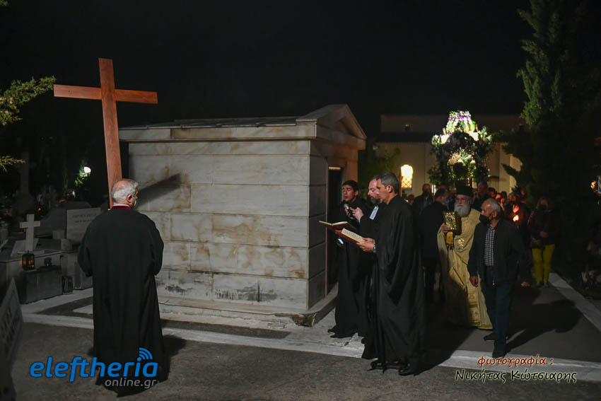 Ο Νικήτας Κώτσιαρης κατέγραψε με τον φακό του και μας μεταφέρει χαρακτηριστικά στιγμιότυπα από την Ακολουθία και την περιφορά του Επιταφίου στους ναούς της Υπαπαντής, του Νεκροταφείου, των Ταξιαρχών και της Ανάληψης.