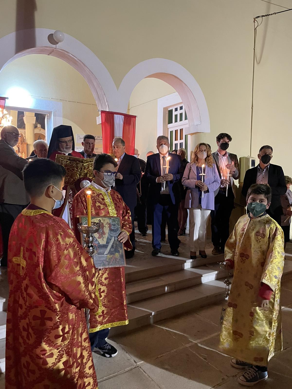 Ο δήμαρχος Πύλου - Νέστορος κ. Παναγιώτης Καρβέλας, τιμώντας την γενέτειρά του, παρευρέθηκε στην Ακολουθία στον Ενοριακό Ιερό Ναό Κοιμήσεως της Θεοτόκου Φοινικούντας, η οποία τελέστηκε από τον Εφημέριο του Ναού Αρχιμανδρίτη Θεόφιλο Πυρπιρή. Το κλίμα ήταν συγκινησιακά φορτισμένο τόσο μέσα στον Ιερό Ναό όσο και σε όλο τον προαύλιο χώρο που ήταν γεμάτος από πλήθος πιστών.