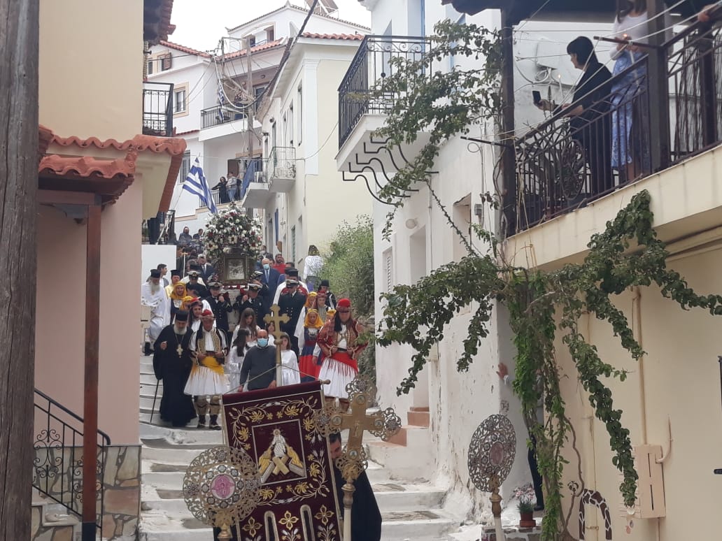 Πριν τις 10.30 το πρωί, ξεκίνησε η λιτάνευση της θαυματουργής εικόνας της Παναγίας, στα γραφικά σοκάκια κάτω από το Κάστρο και στους κεντρικούς δρόμους της Κορώνης, με τη συνοδεία πλήθους πιστών.