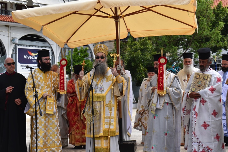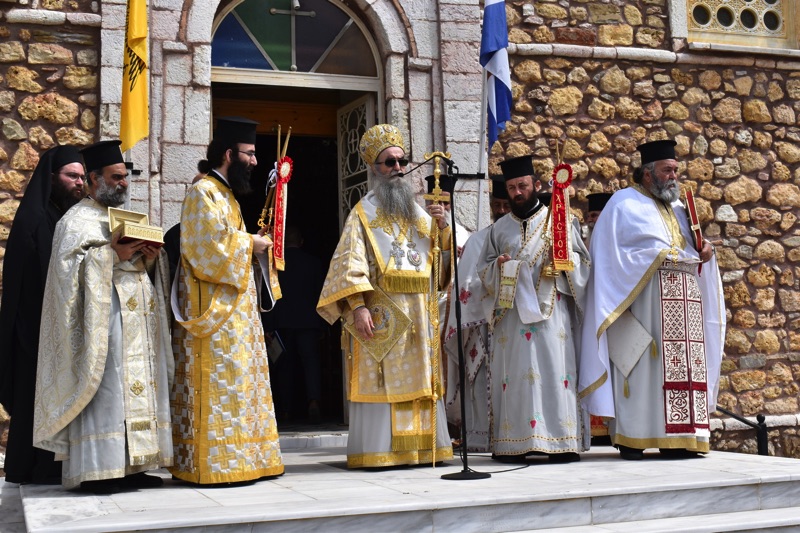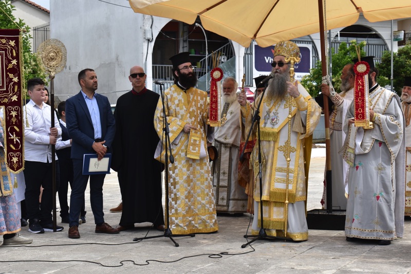 Ο μητροπολίτης Τριφυλίας και Ολυμπίας Χρυσόστομος, προέστη της τέλεσης του όρθρου, της θείας λειτουργίας στον ναό και της δέησης στην κεντρική πλατεία της Χώρας.