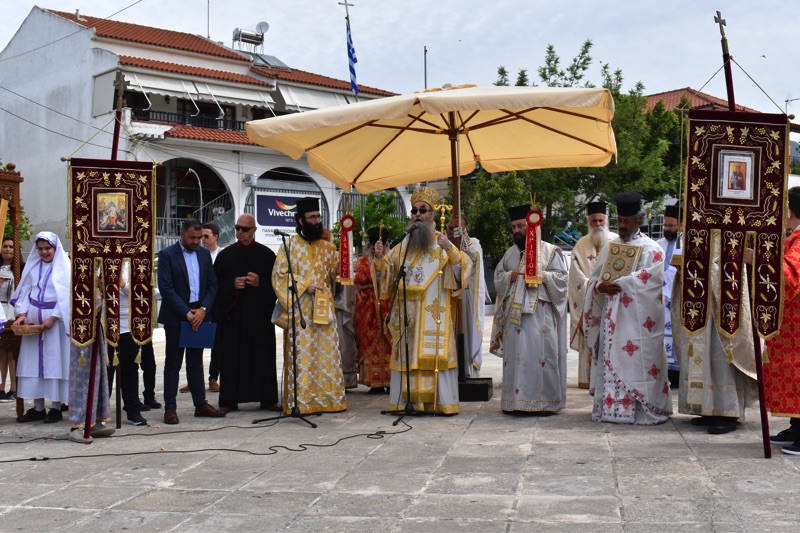 Η λιτανεία της εικόνας του Νεομάρτυρα Αγίου Δημητρίου του Χωραΐτη πραγματοποιήθηκε στους κεντρικούς δρόμους της πόλης, συνοδευόμενη από μαθητές των σχολείων της Χώρας, τη Φιλαρμονική του Δήμου και πλήθους πιστών.