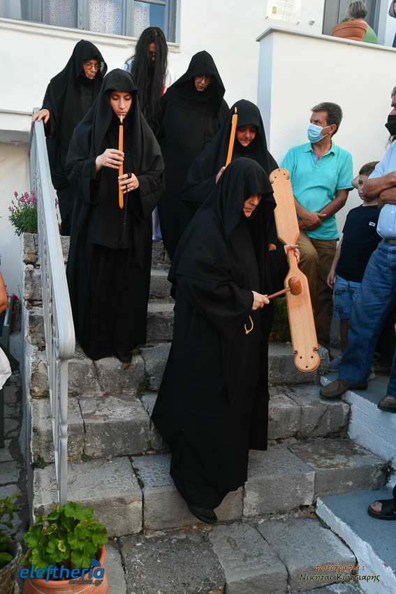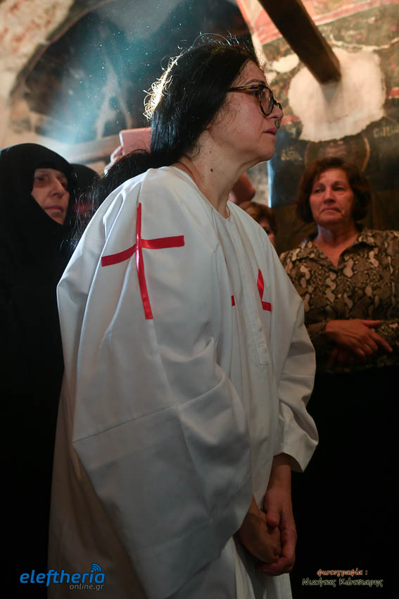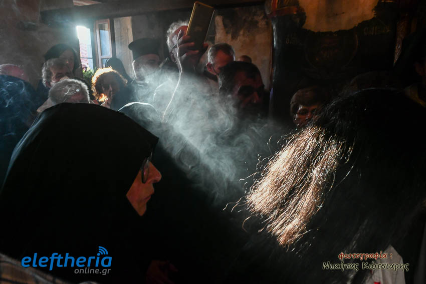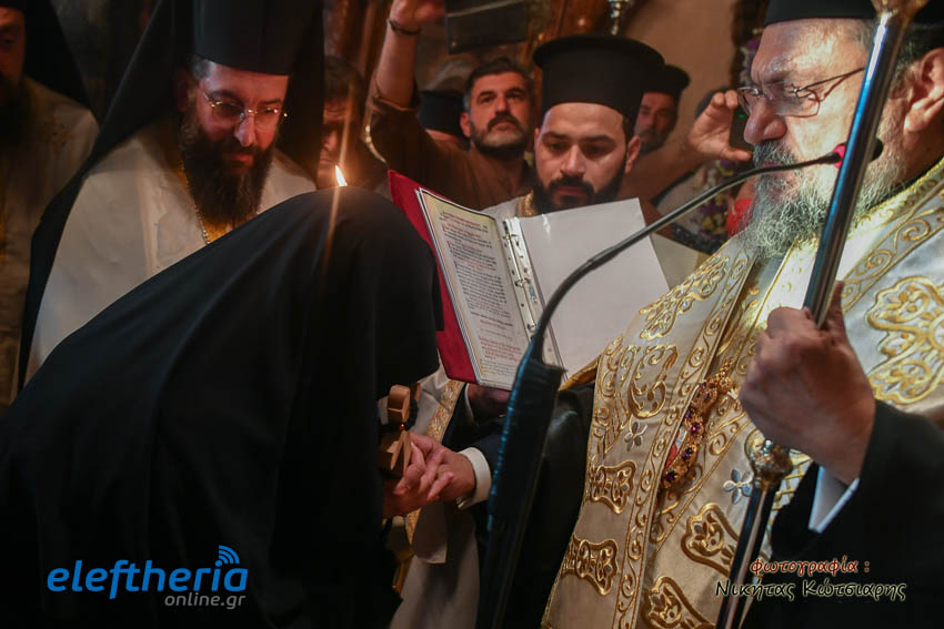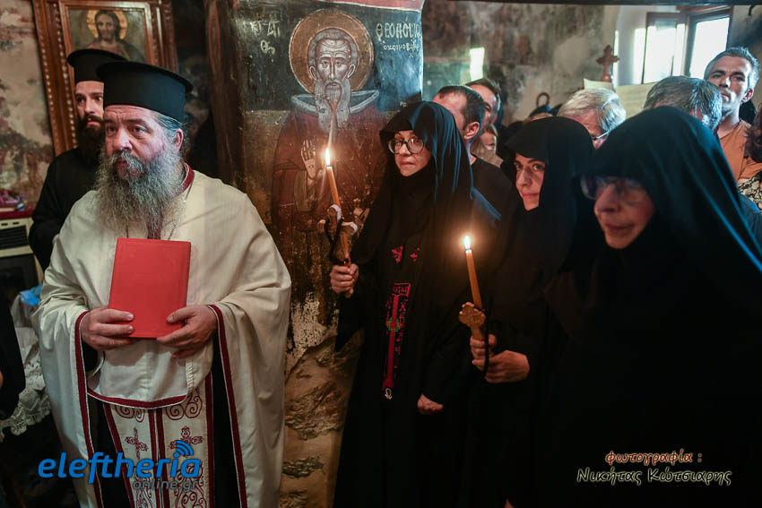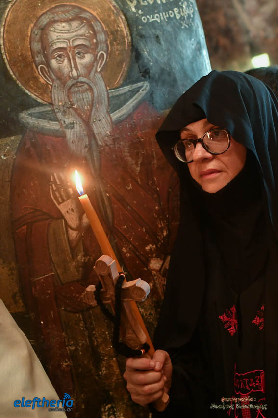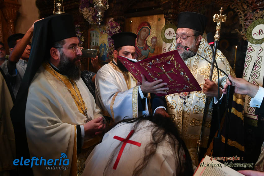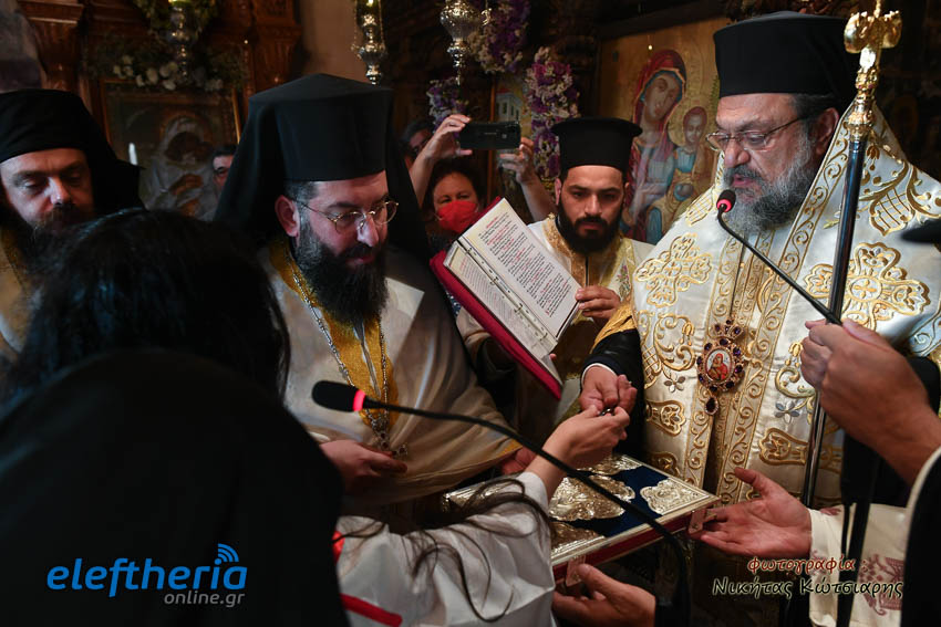 Πριν τον εσπερινό, ο κ. Χρυσόστομος τέλεσε την ακολουθία του Μικρού Σχήματος στην αδελφή Μακαρία και την ρασοφορία στην μέχρι σήμερα δόκιμη μοναχή Αδαμαντία, μετονομάζοντάς την Αλεξία μοναχή. Μετά το πέρας των ακολουθιών ευχήθηκε στις νέες μοναχές “να είναι ισάξιες των ονομάτων τους, αφού το όνομα Μακαρία συμβολίζει την μακαριότητα και την ευτυχία, ενώ το όνομα Αλεξία συμβολίζει τον άνθρωπο του Θεού”, όπως χαρακτηριστικά ανέφερε.