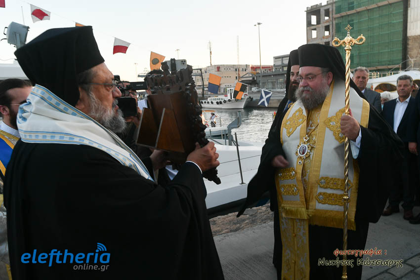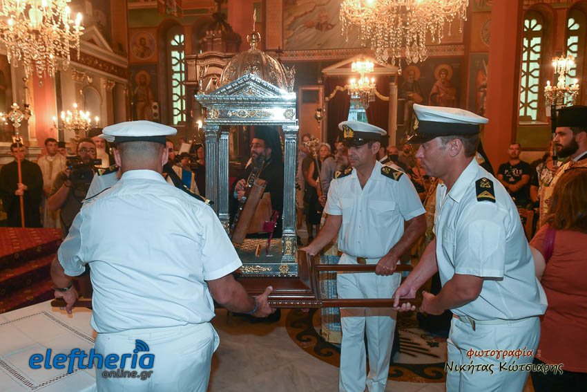 Της υποδοχής που πραγματοποιήθηκε από τη θάλασσα, προέστησαν οι μητροπολίτες Καρθαγένης Μελέτιος και Μεσσηνίας Χρυσόστομος, με την συμμετοχή ιερέων, εκπροσώπων τοπικών αρχών και πλήθους πιστών.