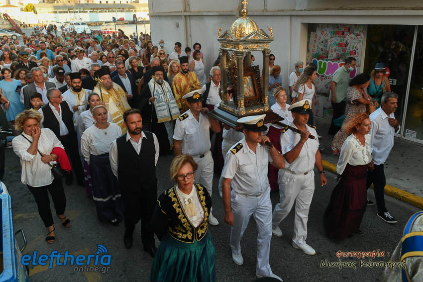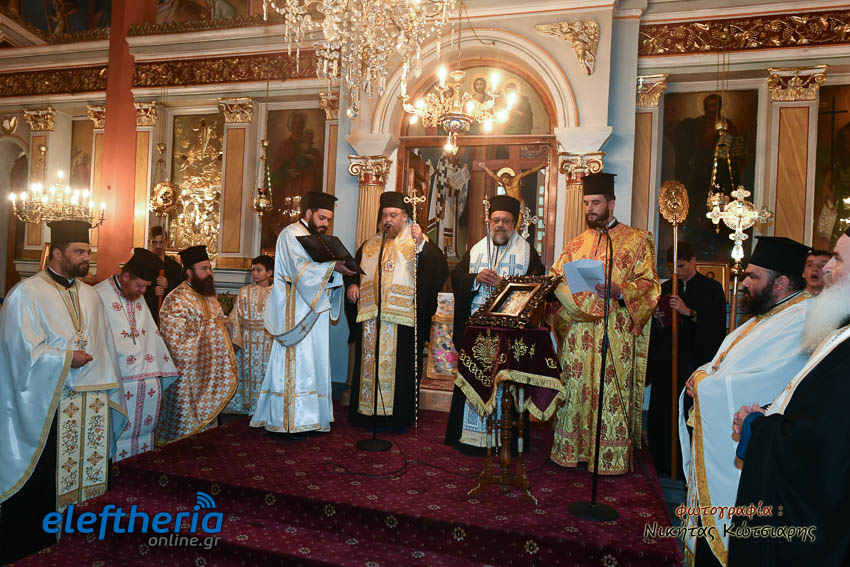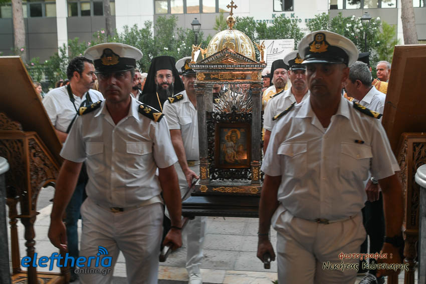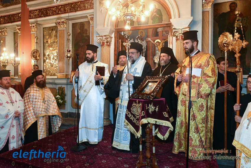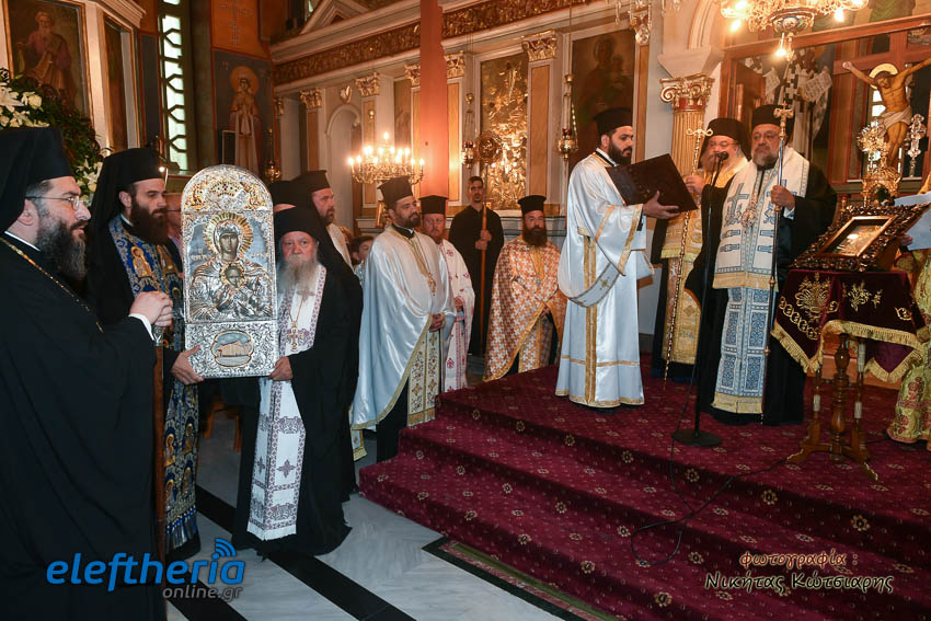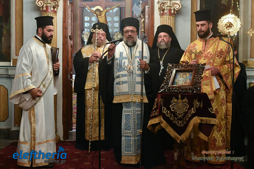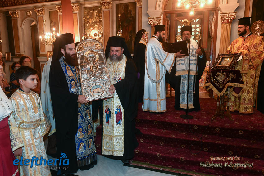 Στη συνέχεια με λιτανευτική πομπή η εικόνα έφτασε στο ναό της Αναλήψεως, όπου και εναποτέθηκε. Ακολούθησε η τέλεση πανηγυρικής σοξολογίας, η χρίση της εικόνας με Άγιο Μύρο και η ενθρόνισή της.